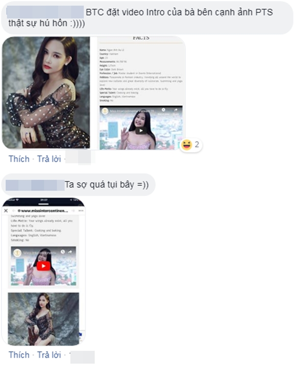 Tuy nhiên, điều khiến các fan “hoảng hồn” là ảnh thumbnail video giới thiệu của Ngân Anh kém xinh hẳn so với hình ảnh đã được “tút tát” kỹ lưỡng. Có lẽ ê-kíp của Ngân Anh đã bỏ lỡ bước cài đặt cho cô nàng một bức ảnh thật đẹp cho video giới thiệu và vô tình khiến 2 hình ảnh đặt cạnh nhau ở phần profile như một trời một vực. Nhiều bình luận của fan Việt thể hiện sự hoang mang trước sự khác biệt lớn này: “Ban tổ chức đặt video Intro của Ngân Anh bên cạnh ảnh photoshop thật sự… hú hồn“.