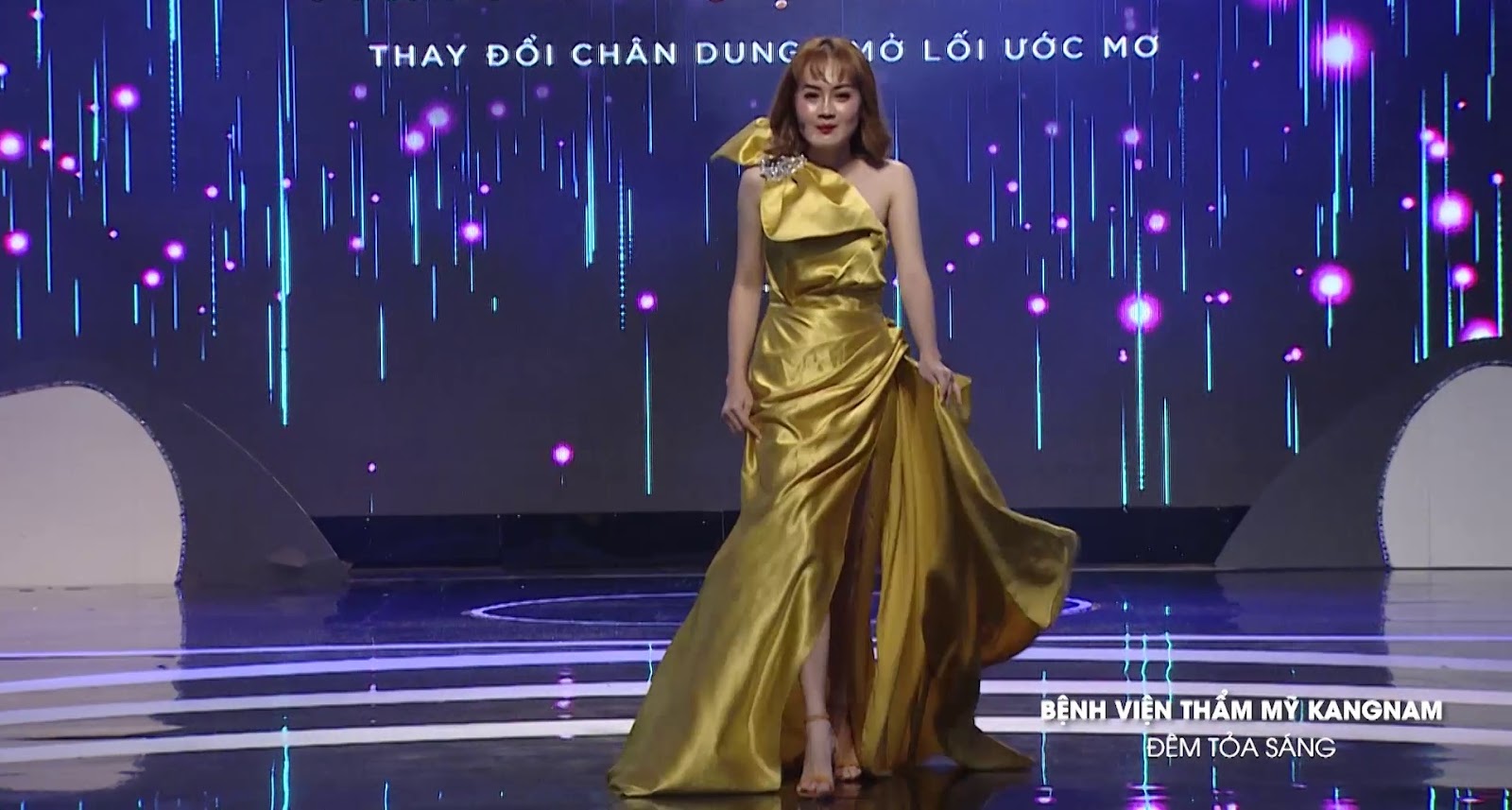 Mỹ Duyên tự tin trên sân khấu gala “Hành trình lột xác”.