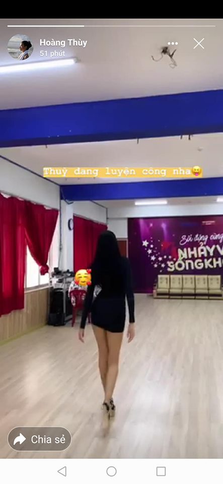 Hoàng Thuỳ chia sẻ về buổi tập luyện catwalk trên mạng xã hội.