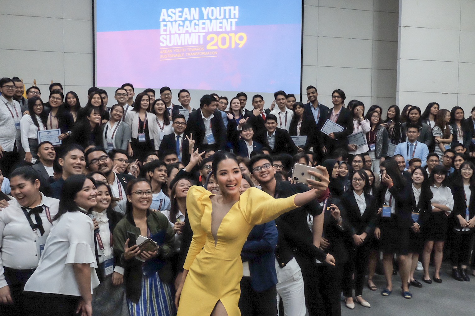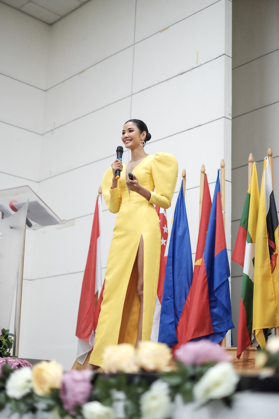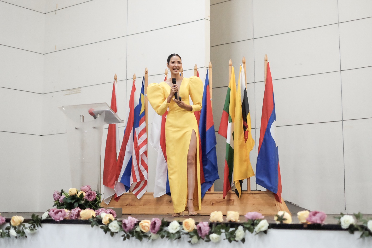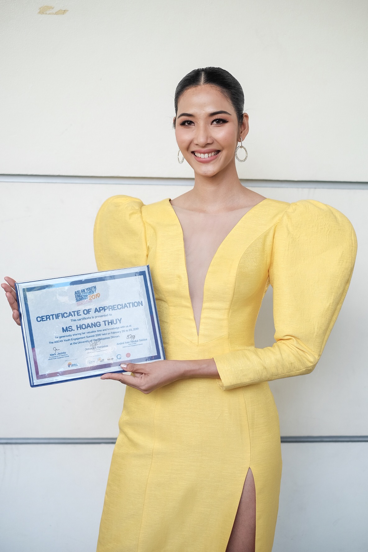 Nhận lời mời từ chương trình Asean Youth Engagement Summit 2019, Á hậu Hoàng Thùy đã có chuyến công tác tại Philippines trong vai trò diễn giả, nơi quy tụ hơn 400 lãnh đạo sinh viên, các chuyên gia trẻ của khu vực Đông Nam Á.