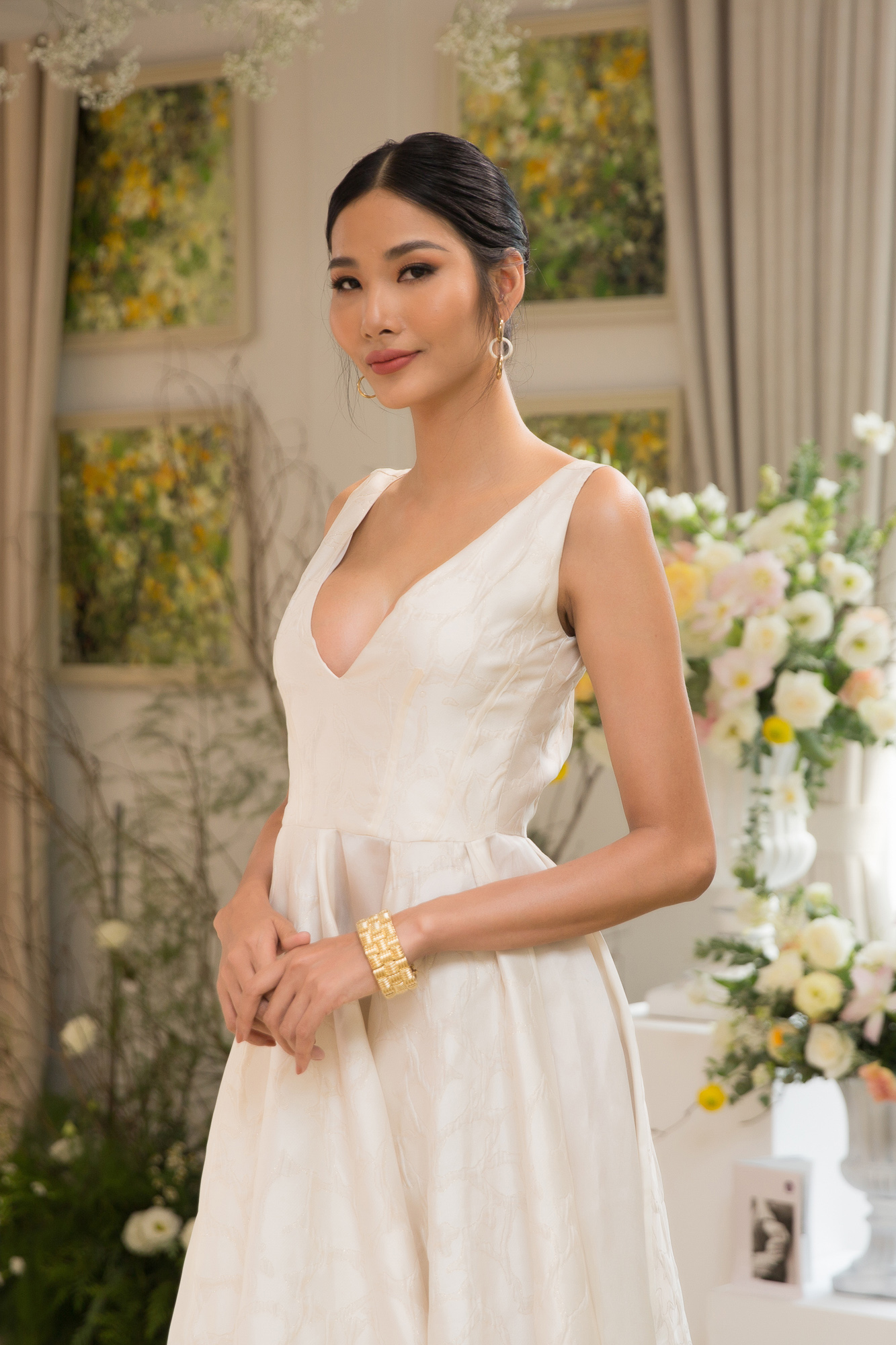 Diện 1 chiếc váy trắng dài với phần ngực được xẻ sâu, Hoàng Thùy thực sự hút mắt. Chiếc váy được làm với chất liệu lụa không chỉ giúp người đẹp khoe trọn được vẻ đẹp đặc biệt của mình mà còn giúp Hoàng Thùy khoe trọn được vóc dáng vạn người mê.