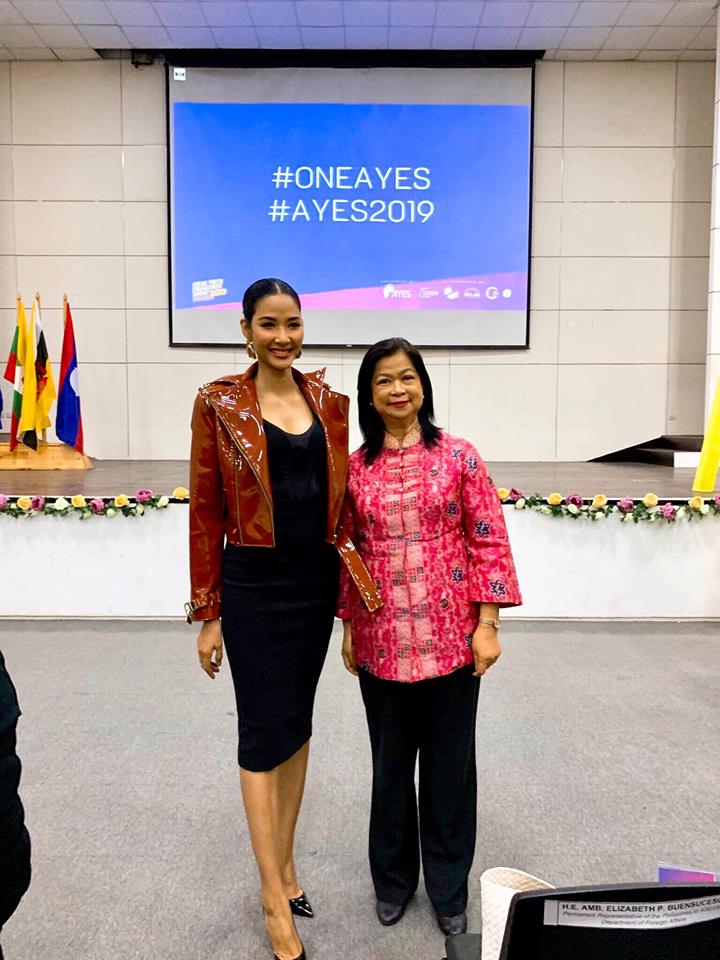 Trên trang cá nhân của mình, Hoàng Thùy chia sẻ “Thuỳ cảm thấy rất vinh dự là đại diện Việt Nam tại AYES. Đây là cơ hơi Thuỳ được lắng nghe từ những nhà lãnh đạo Asean và chia sẻ quan điểm của mình về giới trẻ tại ASEAN.Thuỳ sẽ thuyết trình lúc 2h hôm nay”.