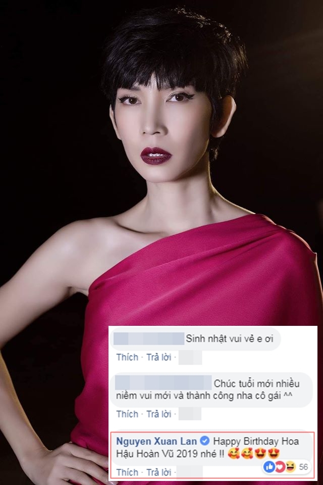 Đáng chú ý nhất, siêu mẫu Xuân Lan bất ngờ chúc mừng sinh nhật Hoàng Thùy: “Happy Birthday Hoa Hậu Hoàn Vũ 2019 nhé“.