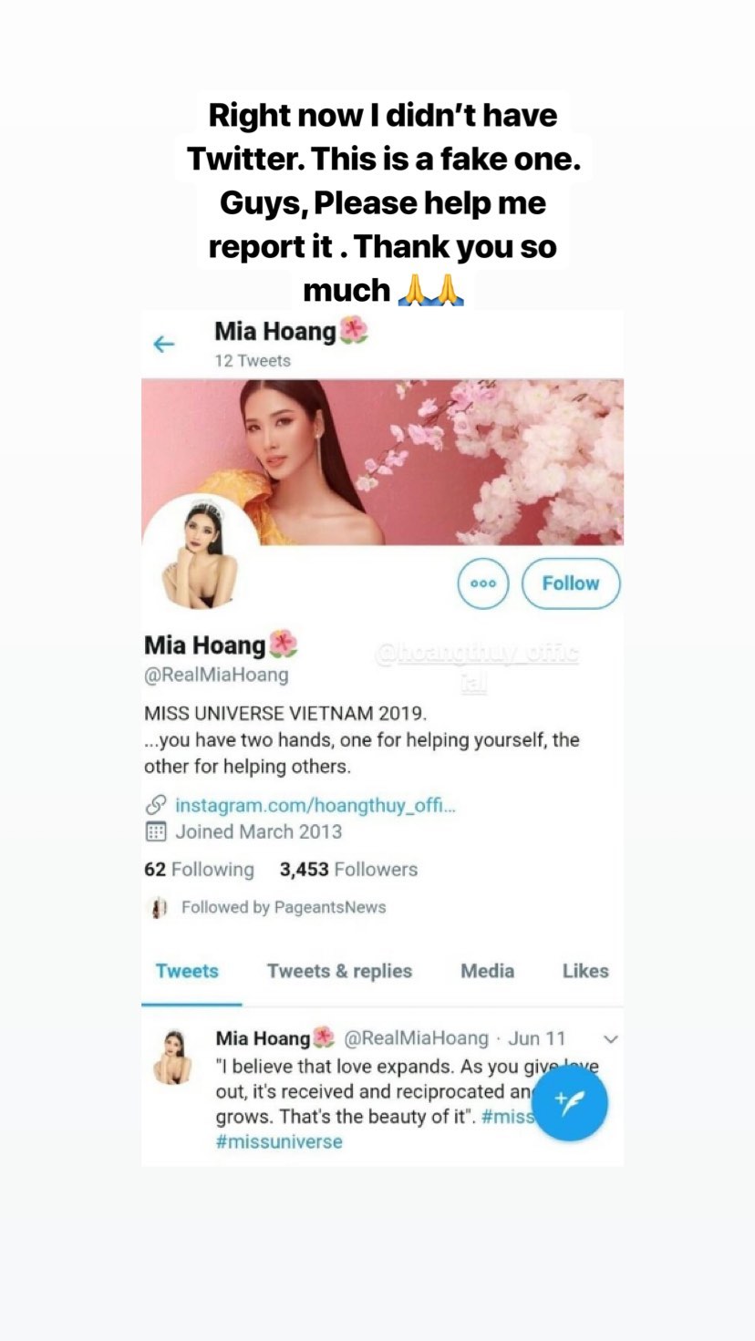 Mặc dù, không có bất kỳ động thái gây hại nào cho hình ảnh của đại diện Việt Nam. Tuy nhiên, để tránh những “hiểm họa” và trường hợp bị kẻ xấu lợi dụng, buộc lòng Hoàng Thùy phải nhờ sự can thiệp của người dùng để báo cáo hủy tài khoản.