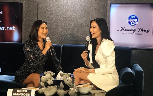 Hoàng Thuỳ cũng chia sẻ Catriona Gray đã truyền cảm hứng tích cực cho mình thông qua lời nói và hành động của cô nàng: “Khi tôi nhìn Cat, tôi cảm thấy một nguồn năng lượng tích cực xung quanh cô ấy, trong mỗi lúc cô ấy nói và hành động. Câu chuyện truyền cảm hứng của Catriona cho tôi đó chính là việc cô ấy đã không từ bỏ khi không giành chiến thắng tại cuộc thi Hoa hậu Thế giới. Vì vậy, tôi nghĩ rằng, tôi cũng có tính cách hơi giống với tính cách Cat, bởi vì tôi sẽ không từ bỏ vì bất kì điều gì đó, chúng tôi luôn tin tưởng vào tương lai tươi sáng. Tôi nghĩ cô ấy đã làm rất tốt và Miss Universe chính là một món quà lớn cho cô ấy”.
