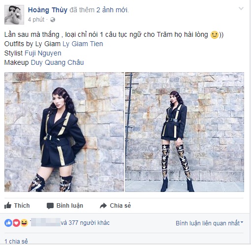 Hoàng Thùy vẫn giữ được sự bình tĩnh và hài hước khi đưa ra lời phản hồi.