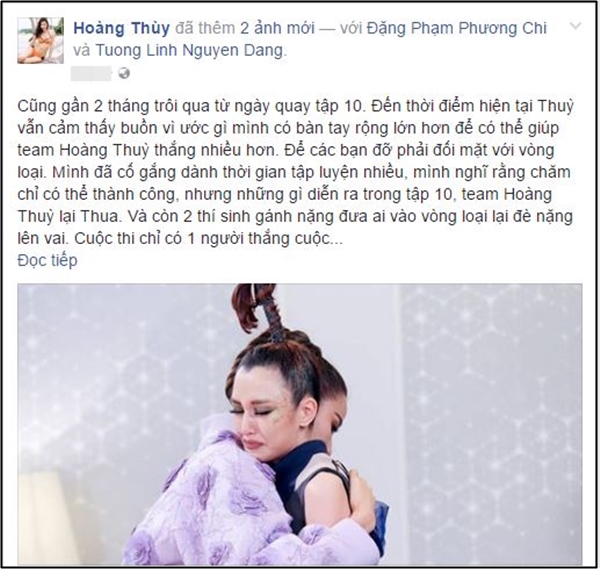 Ngoài biết đây là công việc của mình, mình được mời làm nhưng Thuỳ luôn luôn tận tâm với các bạn, mong muốn các bạn thắng thử thách, học hỏi và tiến bộ nhiều. Nhưng sự việc này làm Thuỳ lúc đó buồn nhiều vì Thuỳ cảm nhận mọi công sức, sự chăm chút, sự tin tưởng và nghị lực để đi tiếp cùng các bạn qua rất nhiều tập bị Thua, nhiều lúc muốn bỏ cuộc của mình gắn với Team bị khước từ…