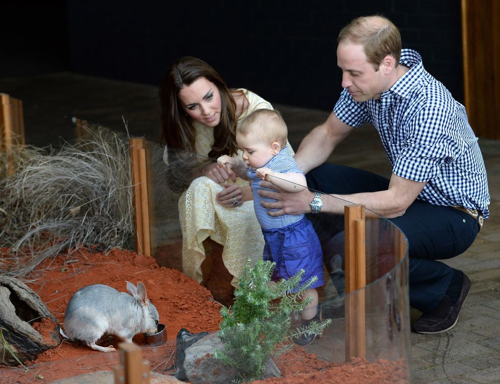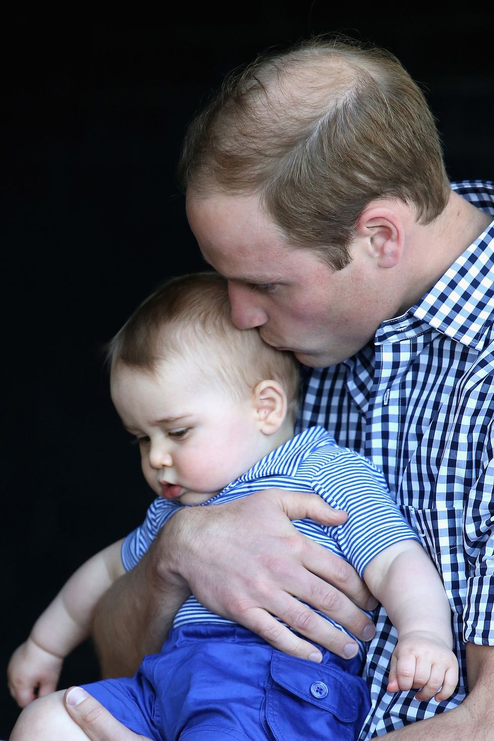 4. Hoàng tử William trao cho George một nụ hôn khi đến thăm vườn thú Taronga ở Sydney, Úc.