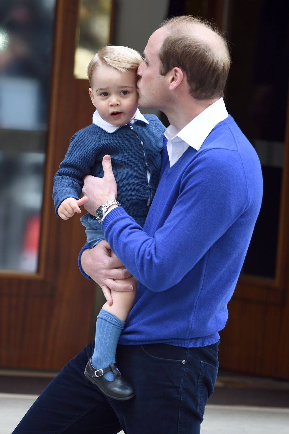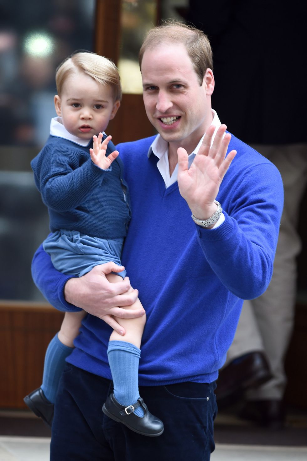 8. Hai bố con mặc đồ đôi tại bệnh viện St. Mary để chào đón sự ra đời của công chúa Charlotte ngày 2 tháng 5 năm 2015.