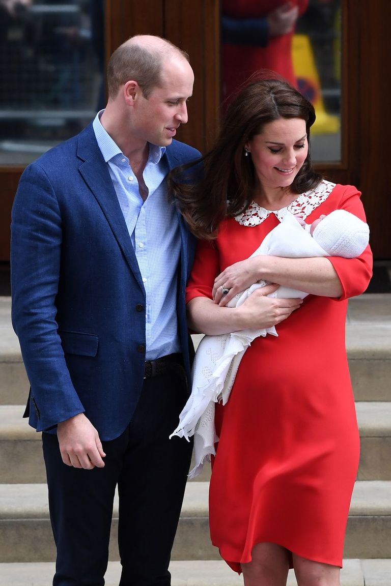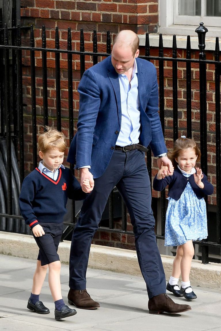 21. Hoàng tử William hộ tống hoàng tử George và công chúa Charlotte đến bệnh viện để đón em út, hoàng tử Louis, vào ngày 23 tháng 4 năm 2018.