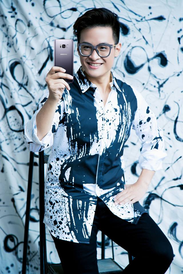 Giản tiện nhưng không nhàm chán chính là hiệu ứng mà Galaxy S8+ Tím Khói mang lại cho Hà Anh Tuấn.