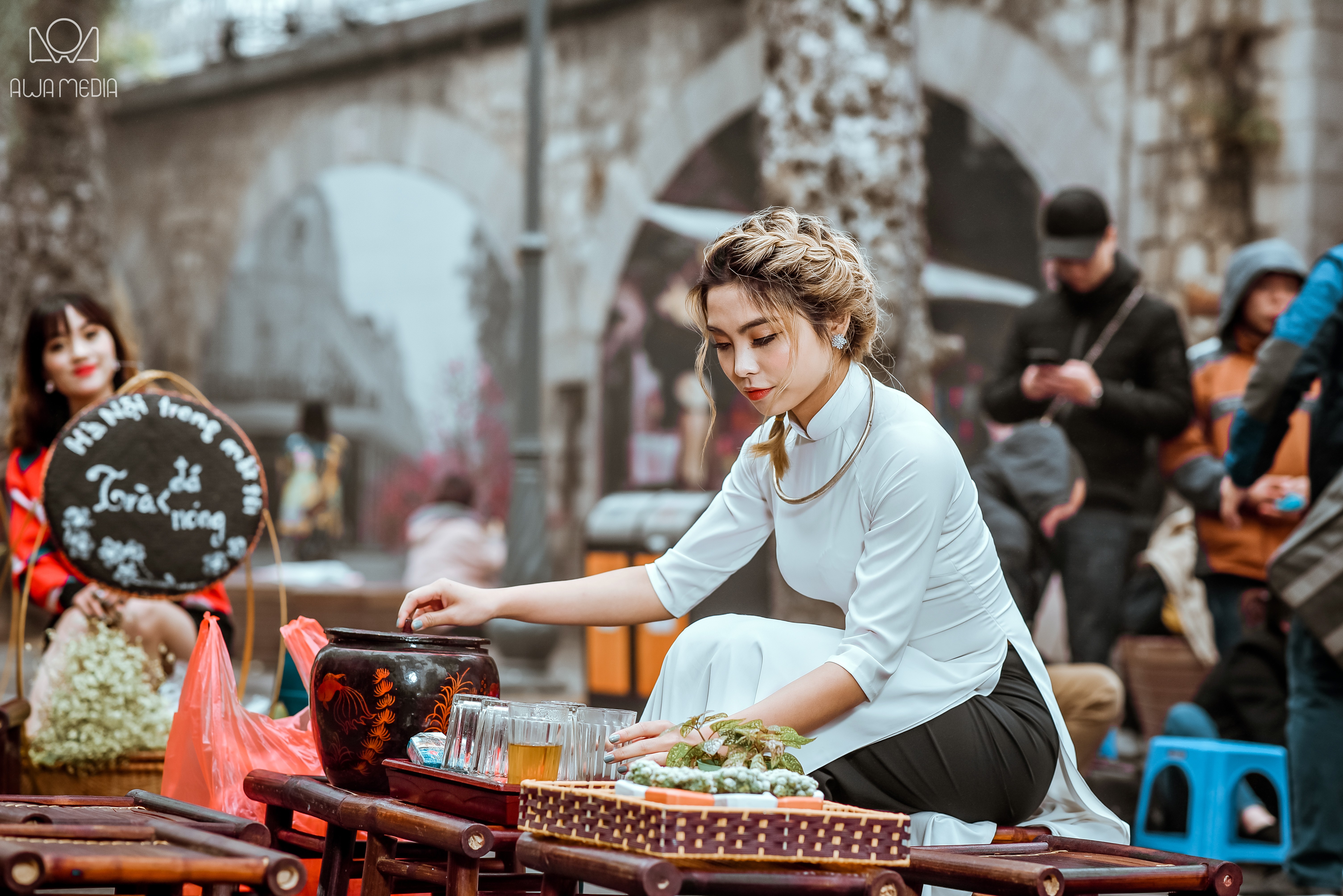 Hiền Mai cho biết, cô cùng nhiếp ảnh gia của mình lựa chọn phố Bích Hoạ - Phùng Hưng. Đây là địa điểm chụp ảnh đang hot nhất tại Hà Nội.