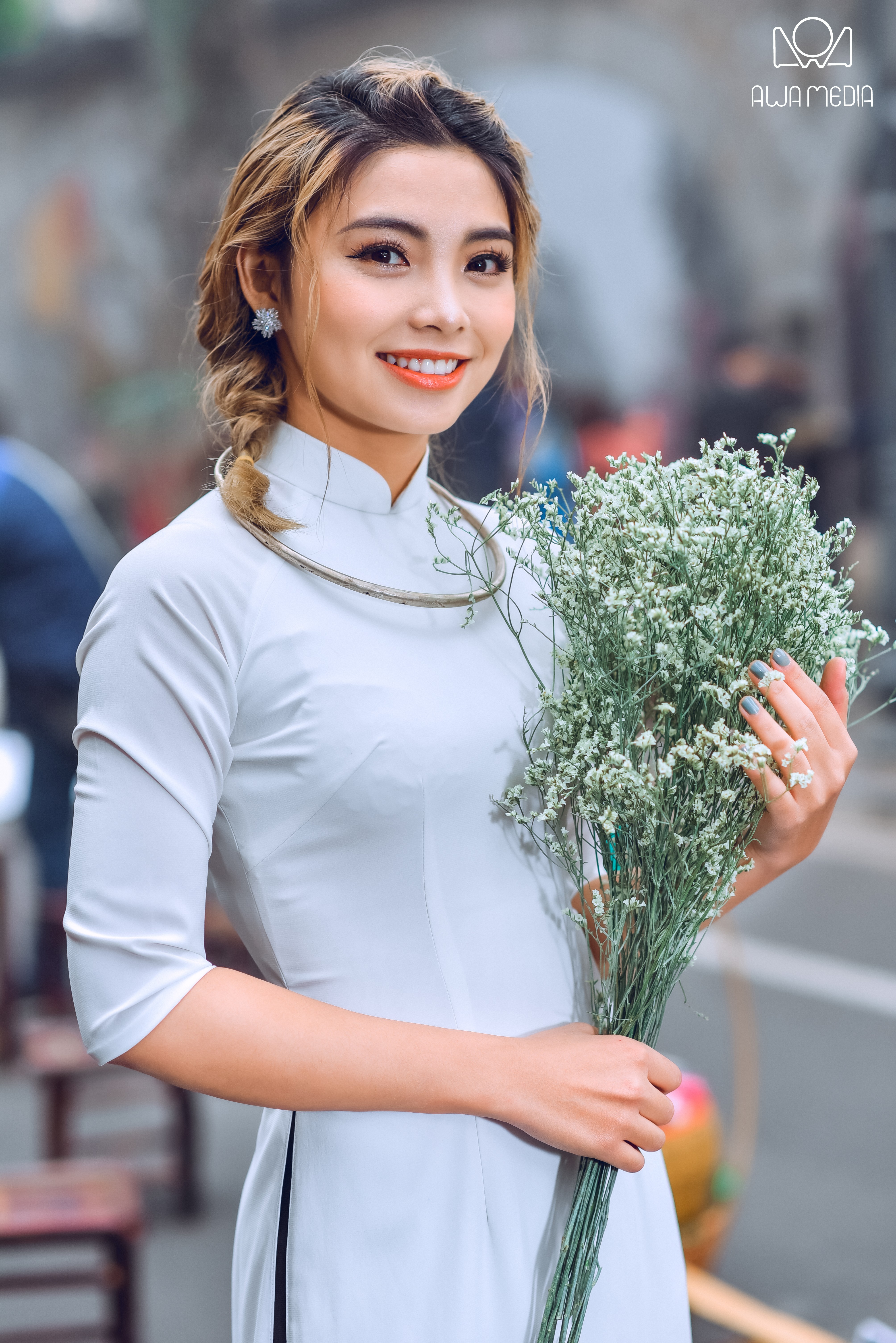 Bên cạnh phong cách âm nhạc trẻ trung, cá tính, Hiền Mai vẫn toát lên sự e ấp, nữ tính trong những chiếc áo dài truyền thống của dân tộc vào dịp lễ tết.