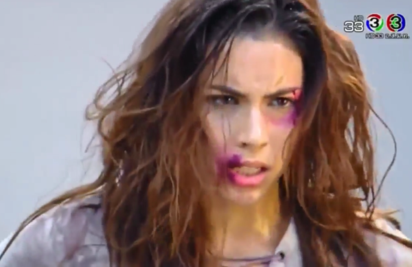 Không chỉ tạo dáng, mỹ nam Attila còn gào thét lấy cảm xúc khiến các đối thủ vô cùng hoảng hốt. Chính vị HLV mà Attila yêu thích nhất là Ploy Chermarn cũng sợ hãi đến mức phải tìm đường bỏ chạy.