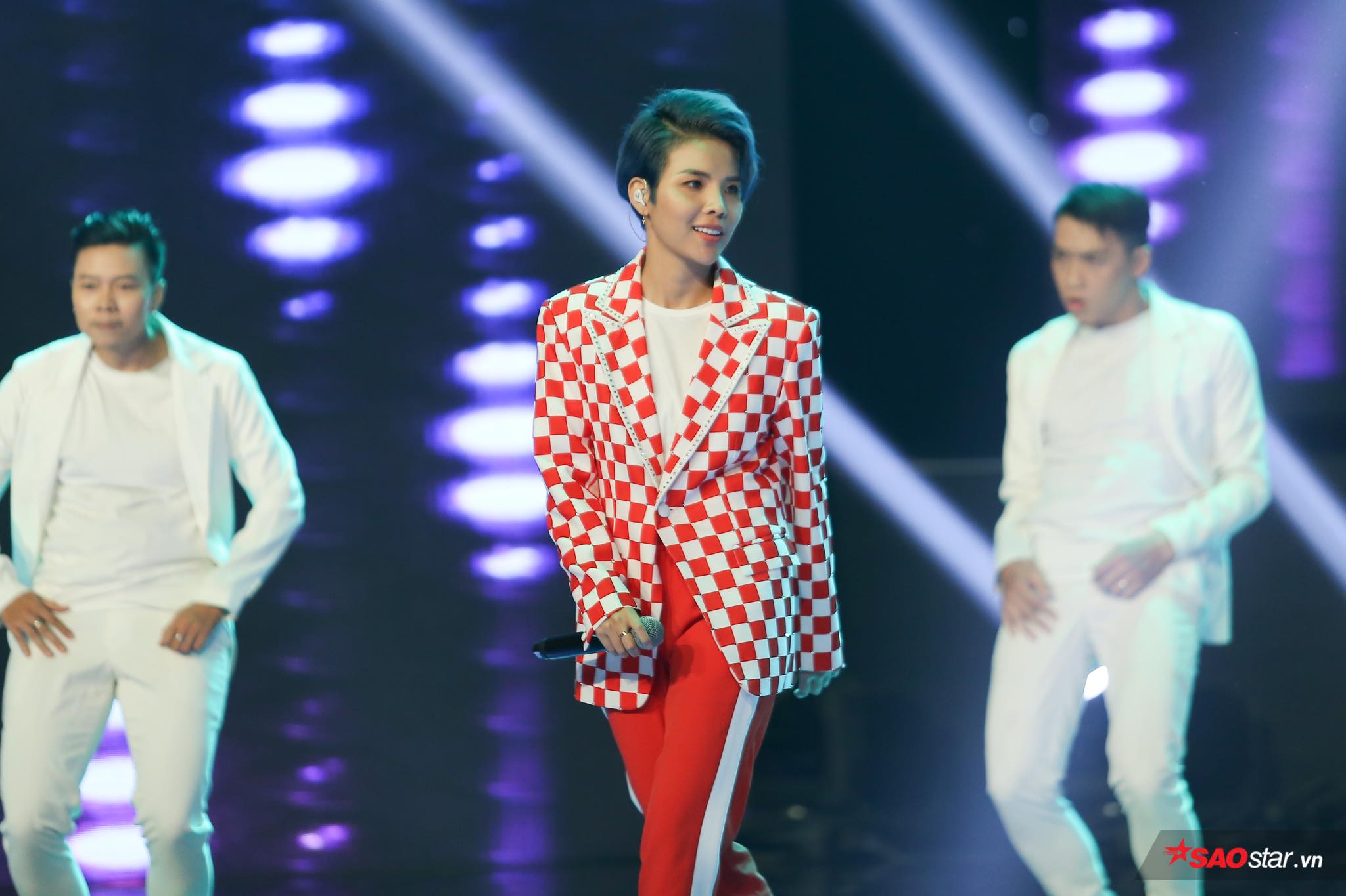 23h25: HLV Hương Giang trình diễn ca khúc Gấm. Đây chính là màn trình diễn được các fan trông đợi nhất nhì đêm chung kết Siêu mẫu Việt Nam 2018.