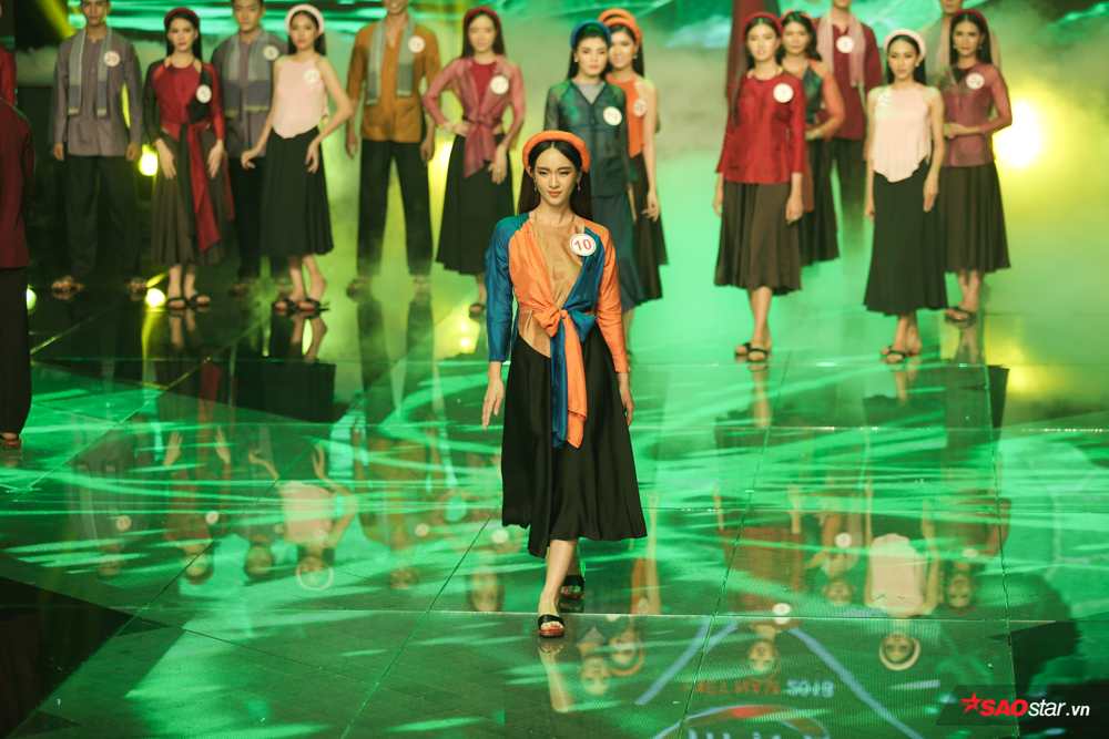 21h04: Đêm thi chung kết Siêu mẫu Việt Nam 2018 chính thức mở màn với tiết mục múa đương đại thể hiện tinh thần chủ đề của mùa giải năm nay: “Người đẹp vì lụa“. Top 30 thí sinh trình diễn bộ sưu tập đầu tiên trong đêm thi quyết định - “Xưa” đến từ thương hiệu Sensorial.