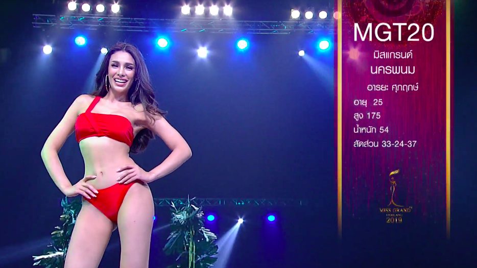 Đêm chung kết Hoa hậu Hoà bình Thái Lan 2019 đã diễn ra sau hơn 1 tháng tổ chức với nhiều hoạt động vô cùng sôi nổi thu hút truyền thông quốc tế. Người đẹp Araya Supharuek - đến từ tỉnh Nakhon Phanom đã xuất sắc đăng quang ngôi vị hoa hậu và chính thức đại diện Thái Lan tại cuộc thi Miss Grand International 2019.