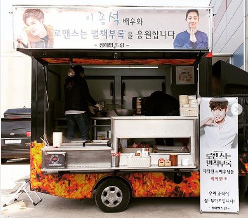 Vào ngày 19/2, Lee Jong Suk đã đăng những bức ảnh về xe tải cà phê của Jung Hae In và Yoon Kyun Sang trên trường quay của bộ phim Romance Romance Is a Bonus Book. Đây được xem là món quà đáng yêu mà “hội mỹ nam” gửi tặng để ủng hộ anh chàng bạn thân vào vai chính trong bộ phim mới của đài tvN.
