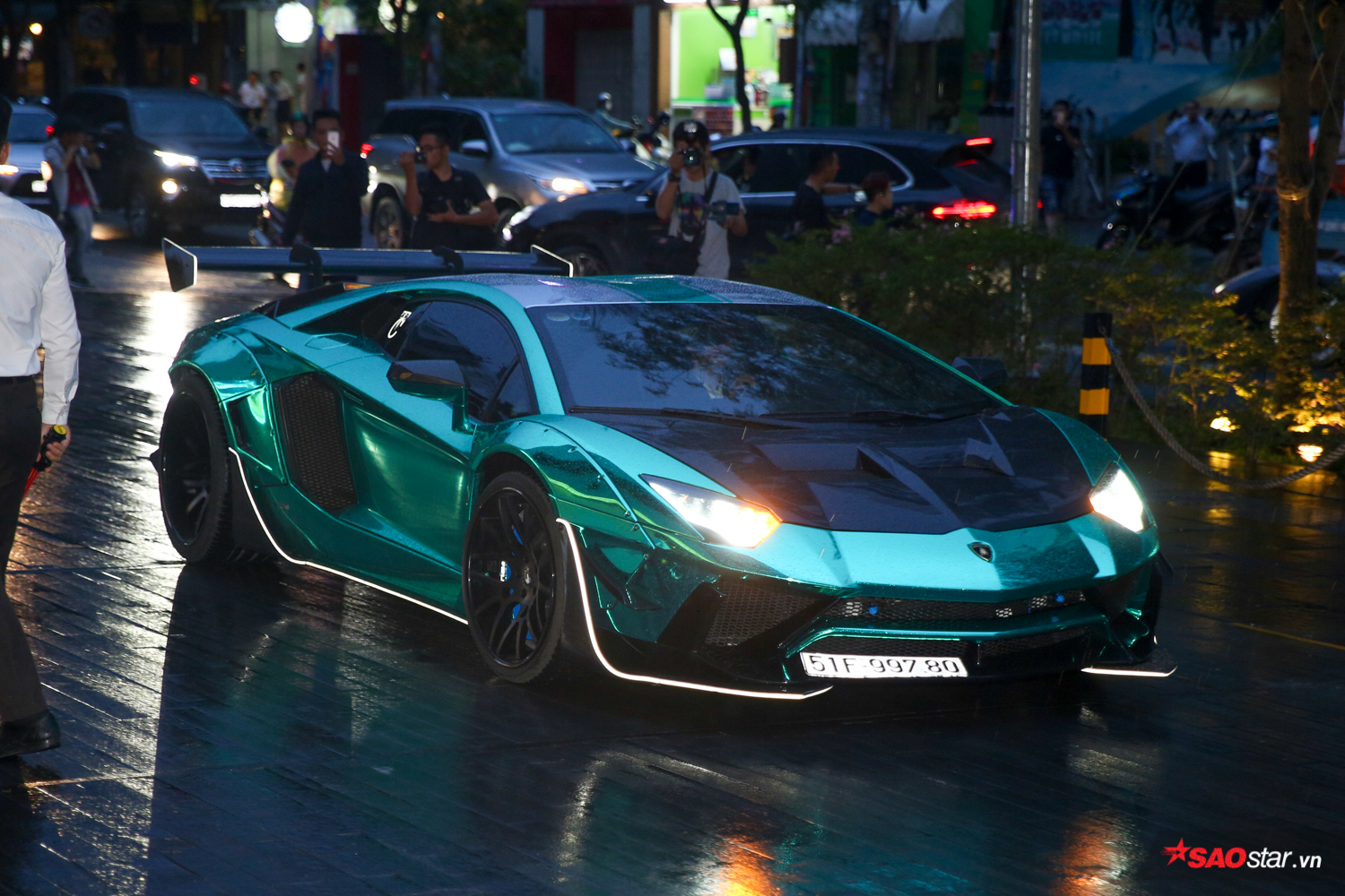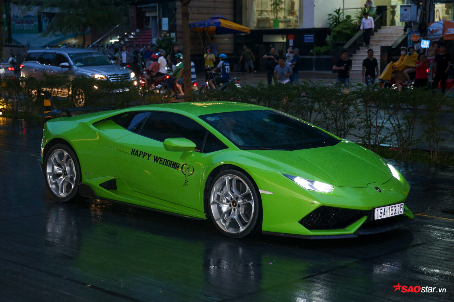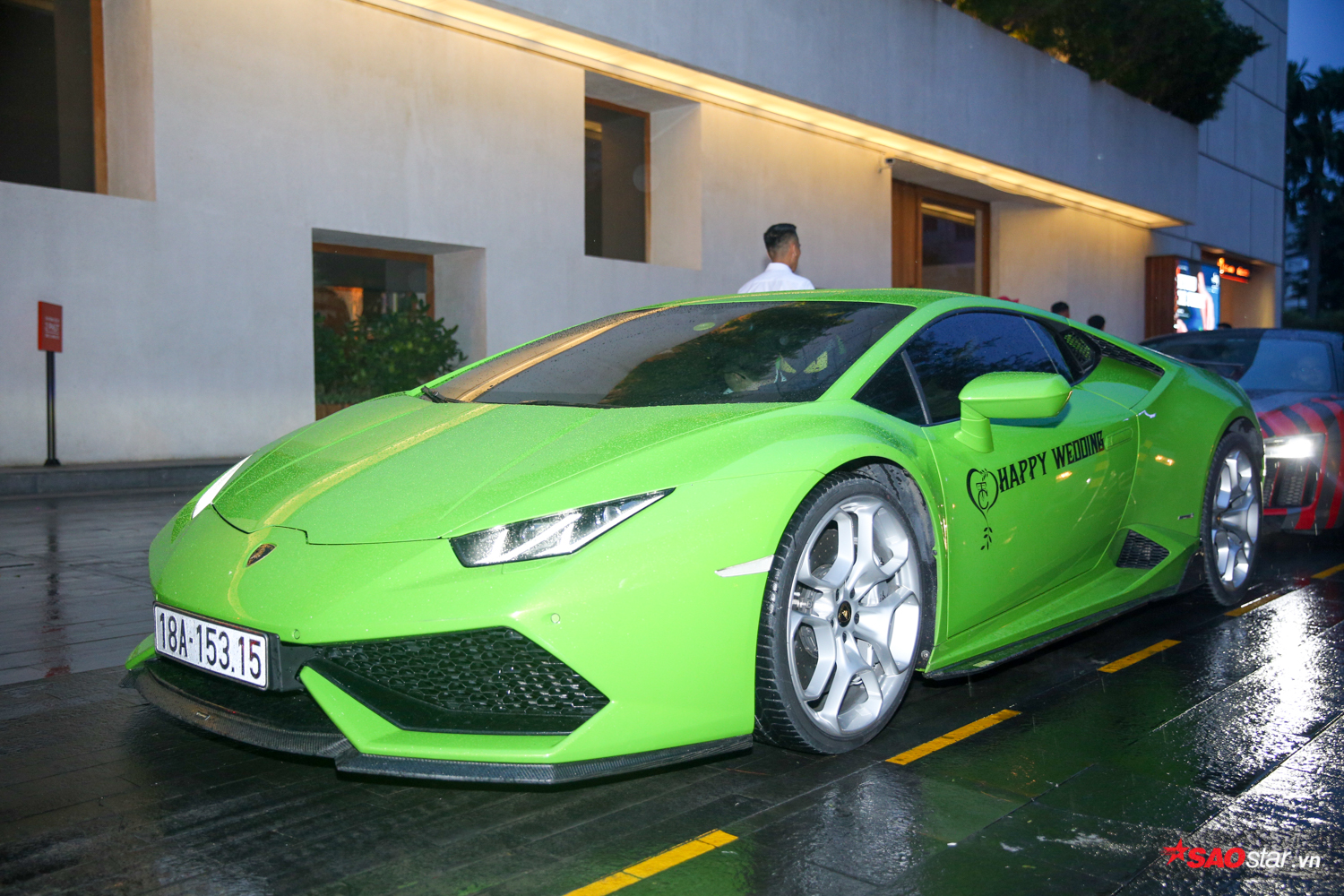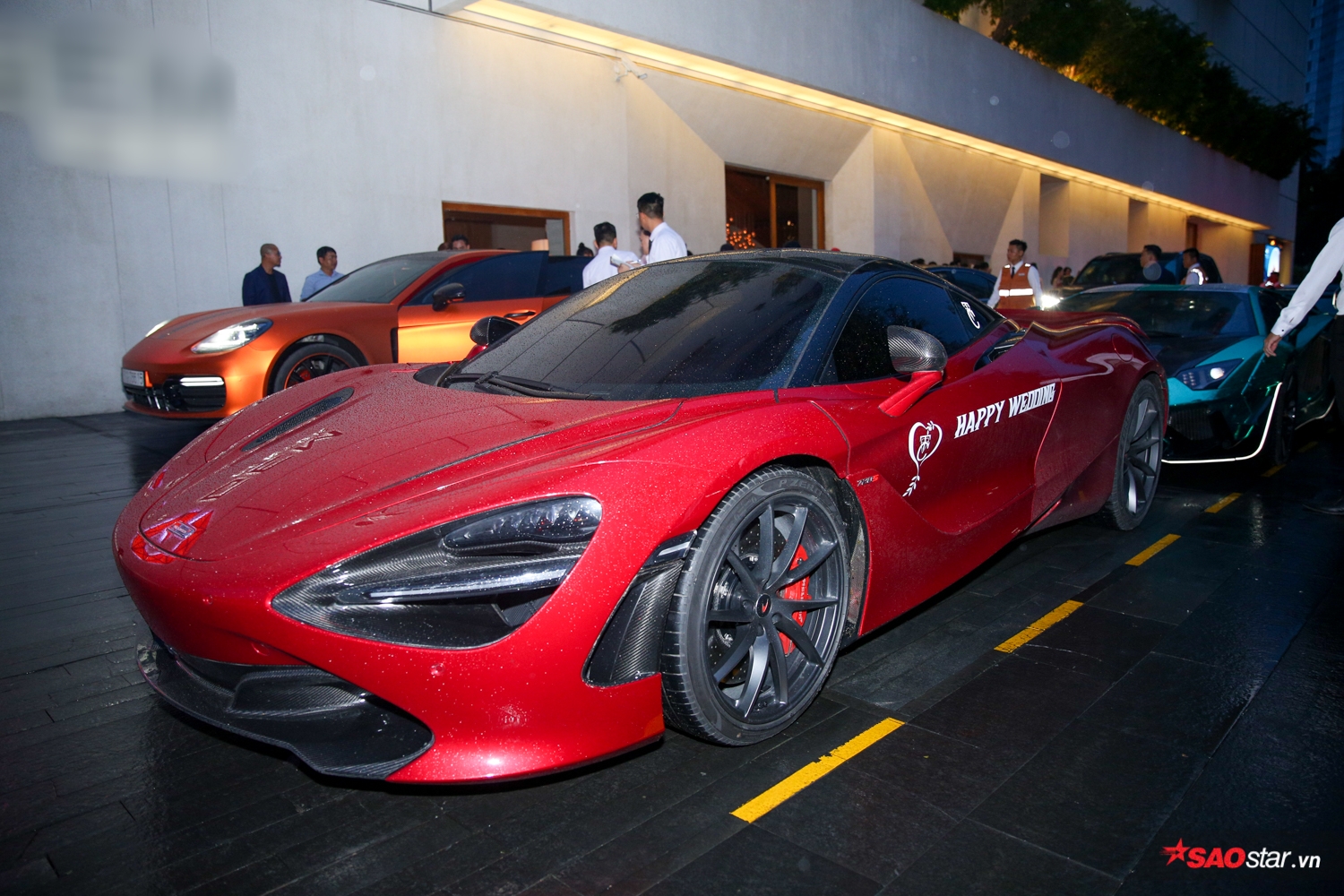 Không chỉ nổi tiếng vì những mối tình cũng các “chân dài” showbiz, Cường Đô la còn được biết đến là “tay chơi” siêu xe với bộ sưu tập khiến ai cũng phải ngưỡng mộ. Vì thế, hôn lễ của anh chàng hẳn nhiên không thể thiếu được món “đặc sản” mang đậm “thương hiệu” này. Không chỉ Cường Đô la mà hầu hết bạn bè của ông xã Đàm Thu Trang đều lái siêu xe đến dự tiệc, một số chiếc còn tinh tế dán logo Happy Wedding để chúc phúc cho cặp đôi.