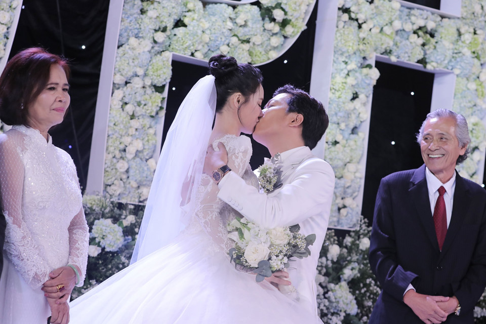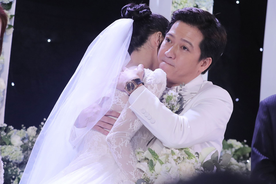 Trong khung cảnh đầy cảm xúc, là một người nhạy cảm nên cô dâu không ngừng rơi nước mắt. Tuy cũng nghẹn ngào nhưng Trường Giang không ngừng quay sang dỗ dành vợ, khi thì ân cần lau nước mắt, lúc lại dịu dàng thủ thỉ ngọt ngào. Từ khi cả hai bắt đầu công khai hẹn hò, “Mười Khó” luôn khiến người khác “mềm tim” vì tình cảm anh dành cho Nhã Phương như thế. Không ồn ào, không phô trương nhưng rất chân thành và kiên nhẫn. Có lẽ cô gái nào cũng chỉ mong nhận được một tình yêu như thế từ người đàn ông của đời mình.