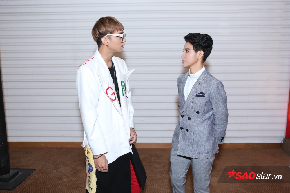 Góp mặt tại buổi họp báo khá sớm nên cả hai tranh thủ trò chuyện về vòng giấu mặt vừa qua.