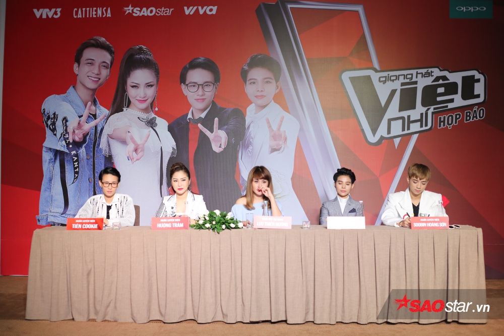 Góp mặt tại buổi gặp gỡ truyền thông này là Giám đốc âm nhạc Lưu Thiên Hương, HLV Soobin Hoàng Sơn, HLV Vũ Cát Tường cùng cặp đôi HLV Hương Tràm - Tiên Cookie. Cùng với những bộ trang phục vô cùng trẻ trung, bắt mắt, việc các HLV đến đúng giờ cũng ghi điểm trong mắt báo chí truyền thông.