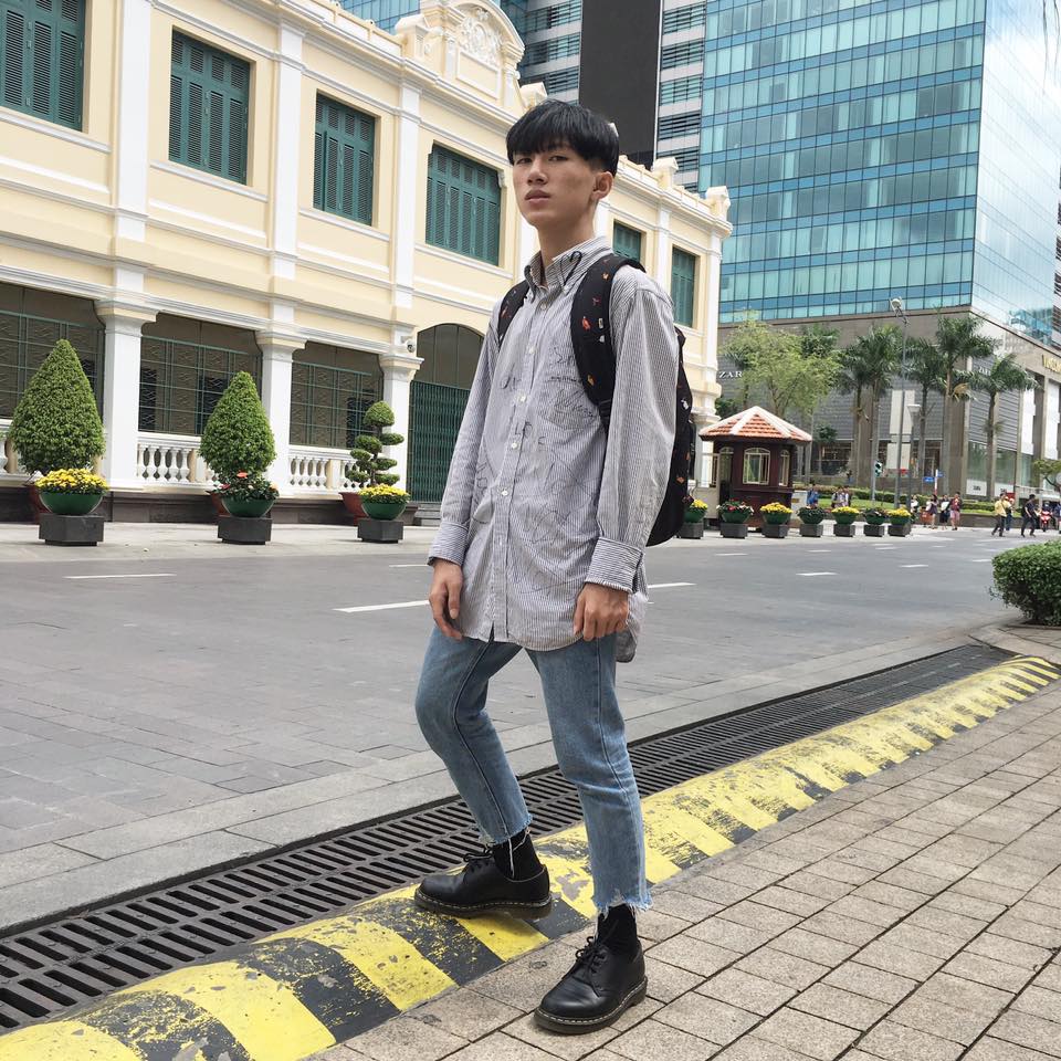 Style ăn mặc của Minh Huy rất trẻ trung và năng động.