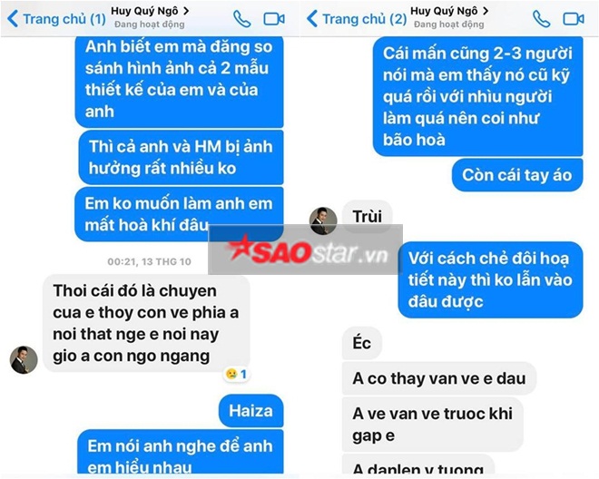 NTK Ngô Nhật Huy cũng “hoang mang” khi phát hiện sự giống nhau giữa 2 thiết kế.