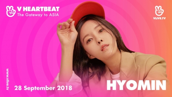 Tối 28/9, Hyomin sẽ cùng nhóm nhạc AOA biểu diễn bên cạnh dàn nghệ sĩ Việt Ưng Hoàng Phúc, Phạm Quỳnh Anh, Will, Han Sara, Trịnh Thăng Bình, Miu Lê, Phùng Khánh Linh, Da LAB,… Được biết sân khấu V Heartbeat sẽ là nơi đầu tiên nữ ca sĩ trình bày những bài hát trong album mới nhất của mình tại Việt Nam thế nên khỏi phải nói người hâm mộ đang mong chờ đến mức nào. Hãy cùng đón xem chương trình V Heartbeat sẽ được diễn ra tại Nhà hát Hòa Bình và được trực tiếp độc quyền trên Vlive tối 28/9 nhé!