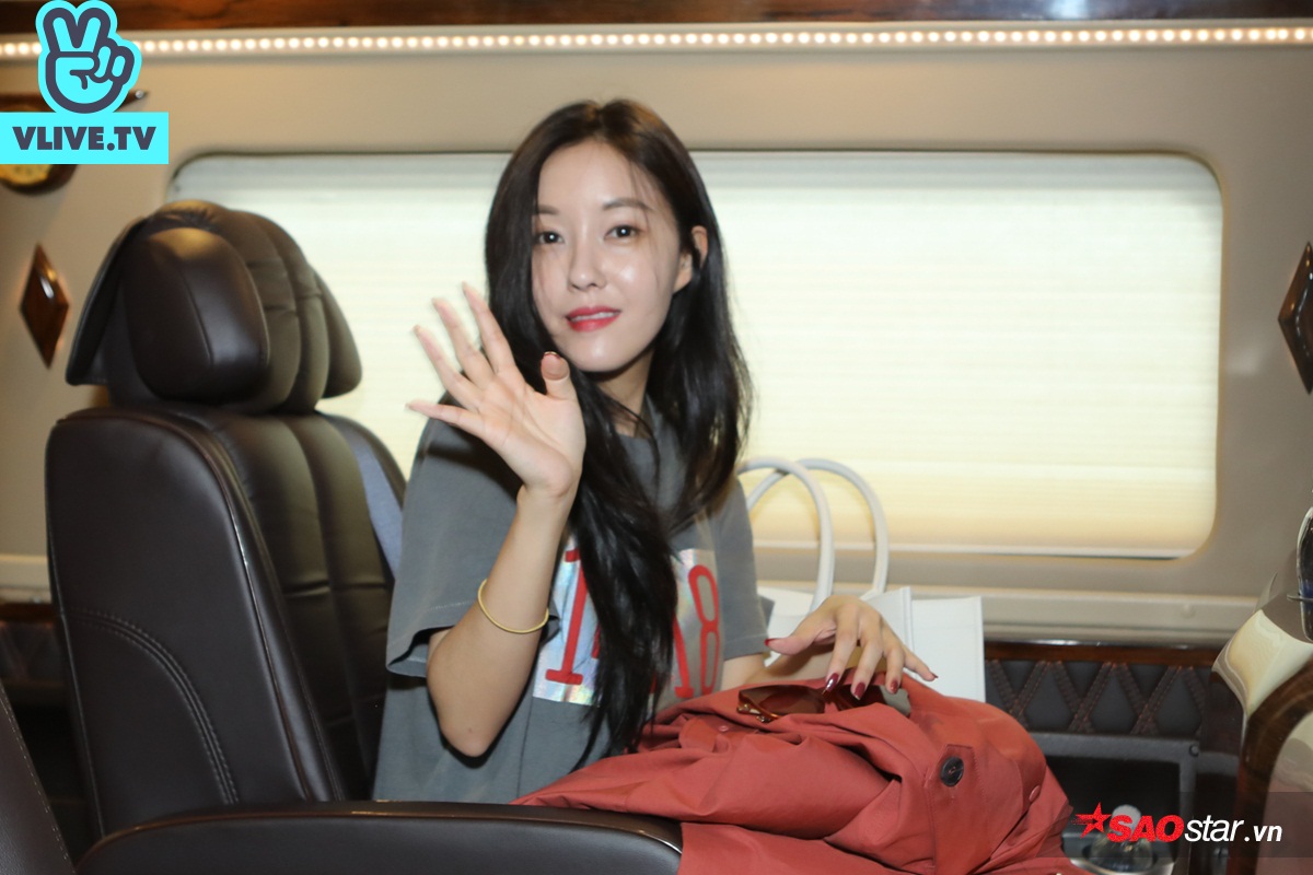Hyomin nhanh chóng được vệ sĩ hộ tống ra xe nhưng vẫn không quên tươi cười vẫy tay chào người hâm mộ. Chính sự thân thiện dễ mến này là một trong những “điểm cộng” lớn của cô nàng với khán giả Việt Nam.