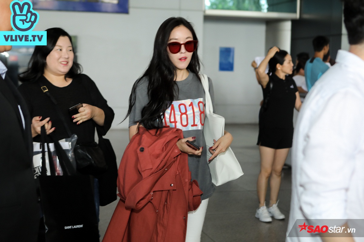 Trưa 27/9, Hyomin đã có mặt tại Việt Nam để tham gia sự kiện V Heartbeat sẽ diễn ra vào tối 28/9. Vừa xuất hiện tại sân bay, nữ ca sĩ đã nhanh chóng thu hút sự chú ý bởi vẻ ngoài xinh đẹp, rạng ngời. Chiếc áo khoác to sự người hâm mộ nhìn thấy tại sân bay Hàn Quốc và lơ sợ khi đến Việt Nam sẽ thành hiện tượng “thời trang phang thời tiết” đã được cô nàng cầm trên tay để lộ trang phục đơn giản, khỏe khoắn bên trong.