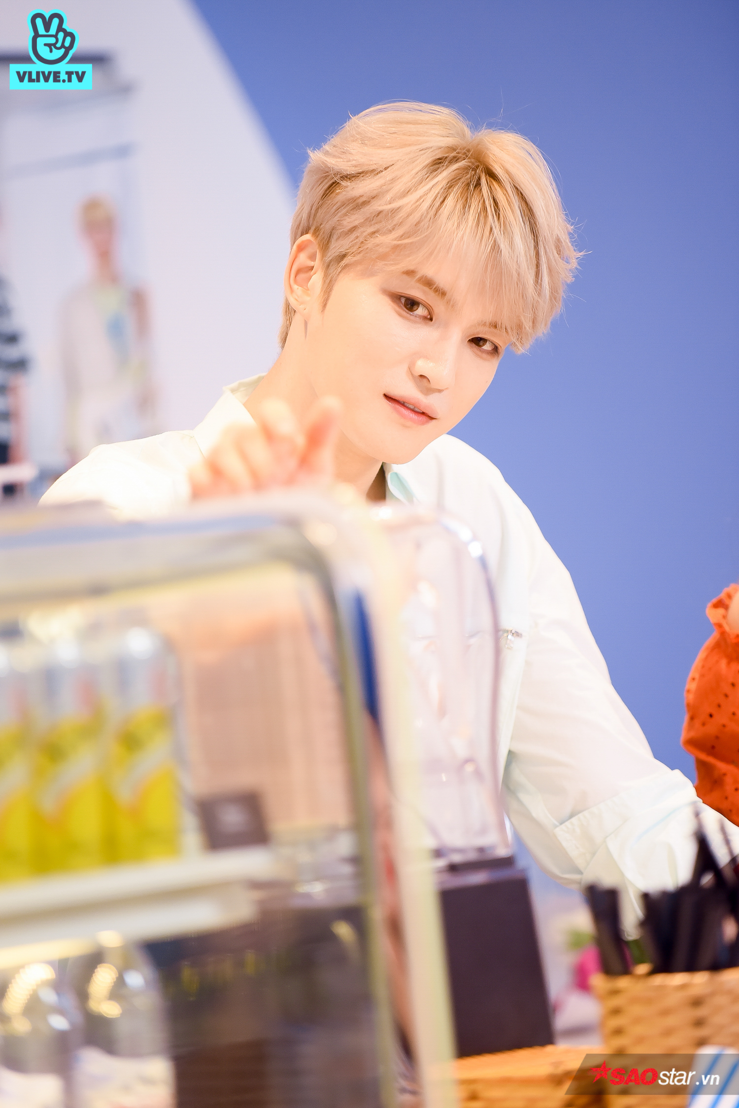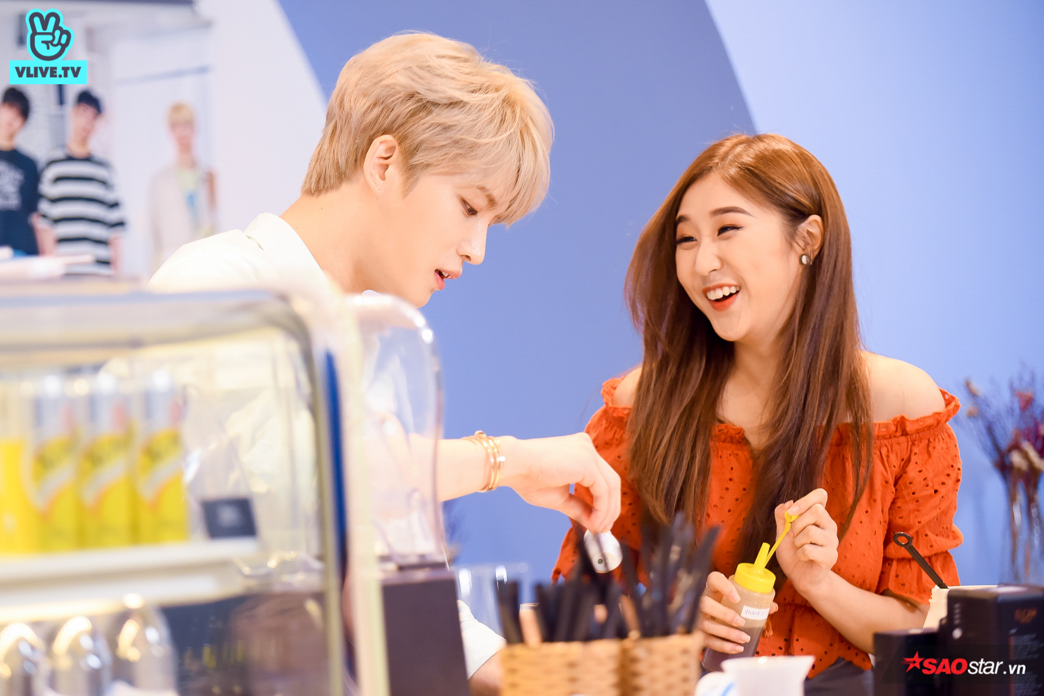 Trong buổi giao lưu này, anh chàng hoá thân thành một nhân viên pha chế để đích thân chuẩn bị đồ uống cho các fan của mình đang có mặt tại quán cafe.