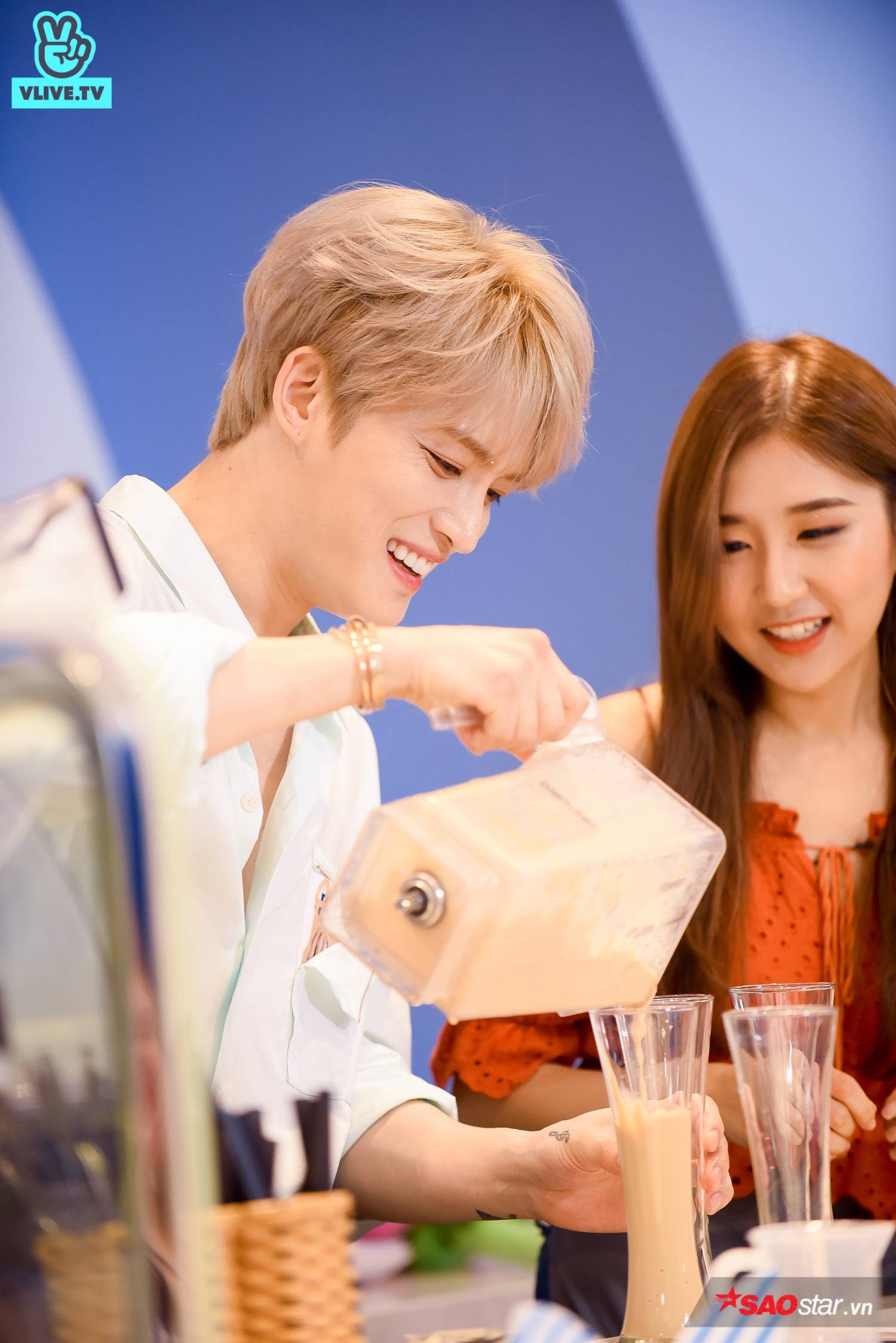 Ở món đồ uống cuối cùng, Jae Joong còn tự mình nếm thử, thậm chí tự tay khuấy đều để các fan uống ngon hơn.