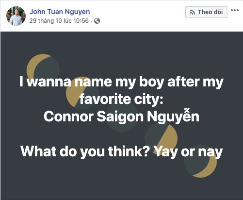 Trước đó, ông xã Lan Khuê đã úp mở việc đặt tên cho con trai là Connor Saigon Nguyễn.