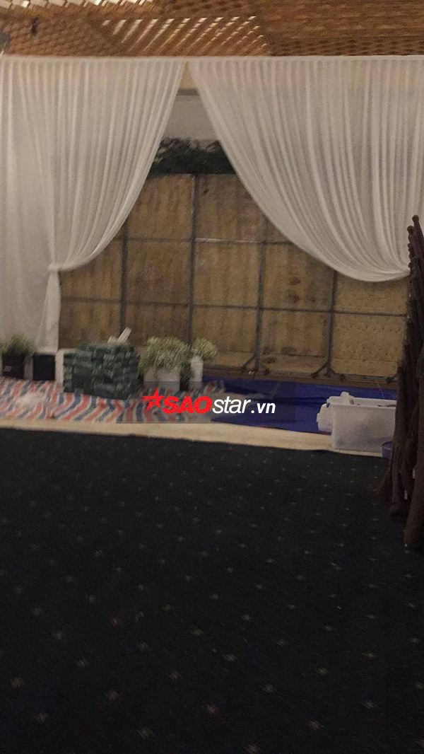 Phía cánh của sân khấu vẫn đang hoàn tất việc trang trí.