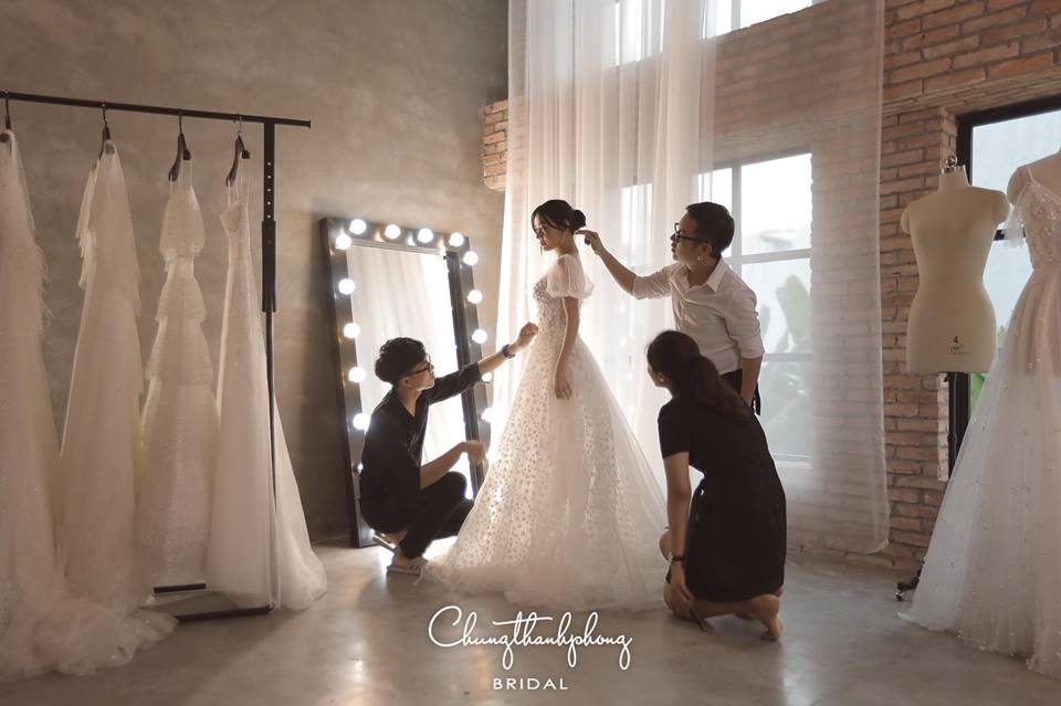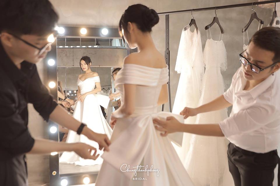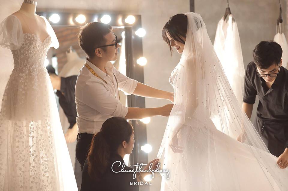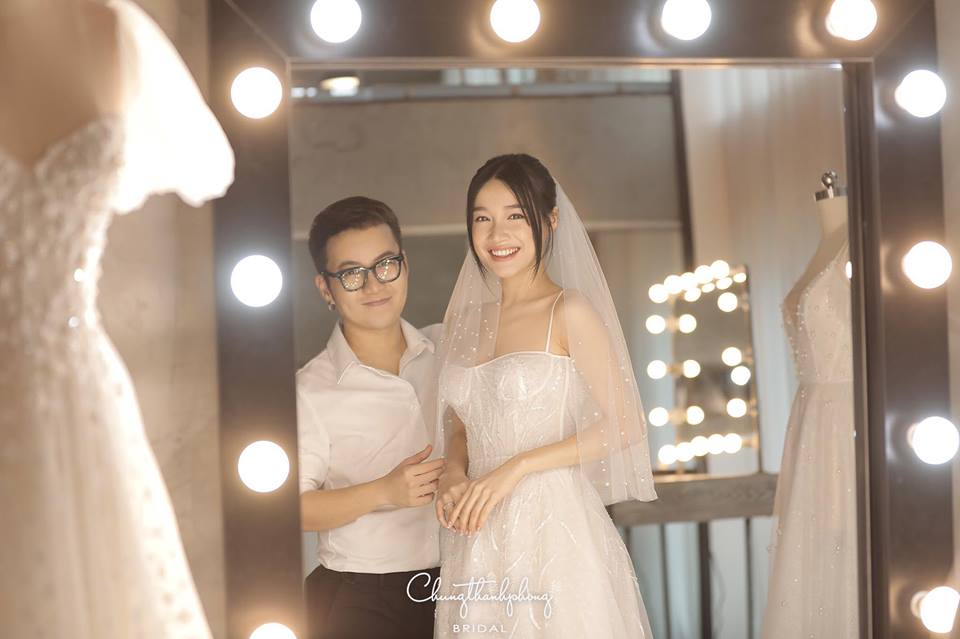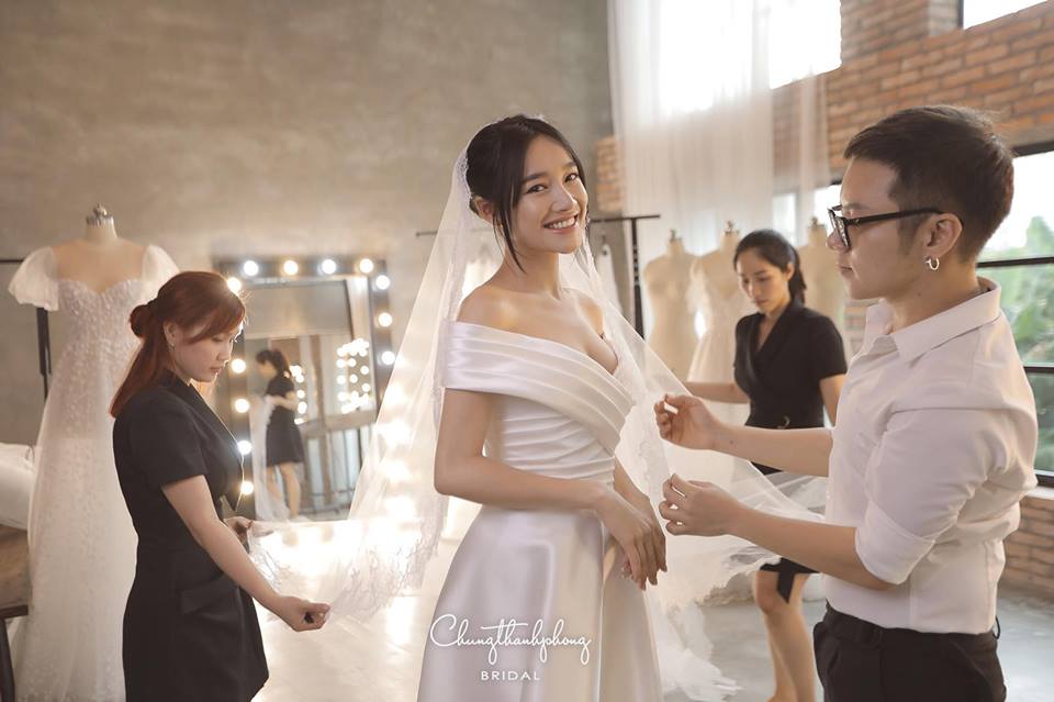 Mới đây, những shot hình hậu trường buổi chụp ảnh cưới cũng đã được NTK tài ba hé lộ. Trong những bức hình này, Nhã Phương dù không trang điểm nhưng vẫn vô cùng xinh đẹp, thần thái tựa như nàng tiên.