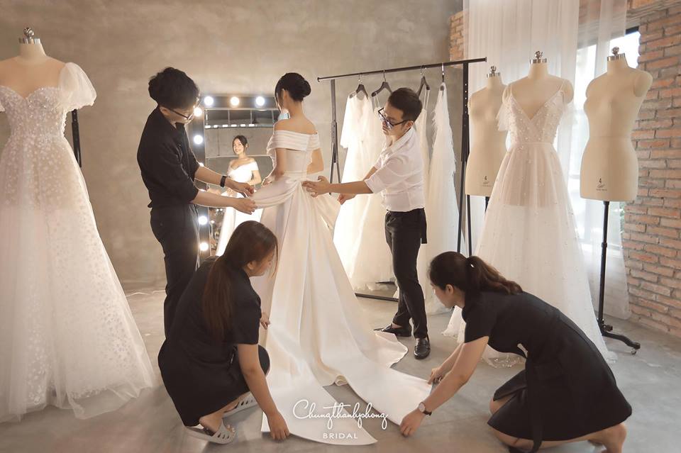 “Nhờ điều này, bộ cánh của Nhã Phương đáp ứng đúng xu hướng tối giản của thời trang cưới thế giới nhưng vẫn toát lên sự gợi cảm, sang trọng làm say lòng người” NTK tiết lộ.