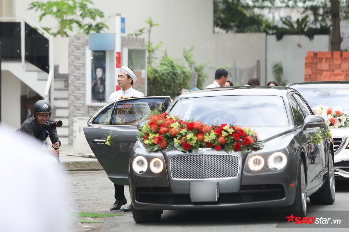 Chú rể mặc áo dài truyền thống bảnh bao xuất hiện.