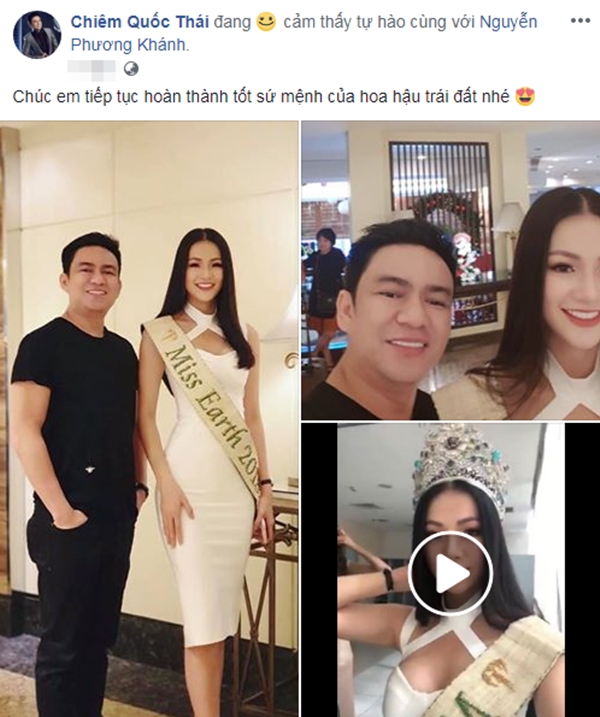 Mới đây, trên một fanpage bất ngờ tiết lộ thông tin cô đang hẹn hò cùng bác sĩ Chiêm Quốc Thái và anh cũng đã bay sang tận nơi để cổ vũ cho Phương Khánh trong đêm thi chung kết. Trên trang cá nhân của mình, bác sĩ Chiêm Quốc Thái cũng không ngần ngại đăng tải hình ảnh cùng nàng Hậu khiến cư dân mạng thêm “bán tín bán nghi” về thông tin cả hai đang hẹn hò.
