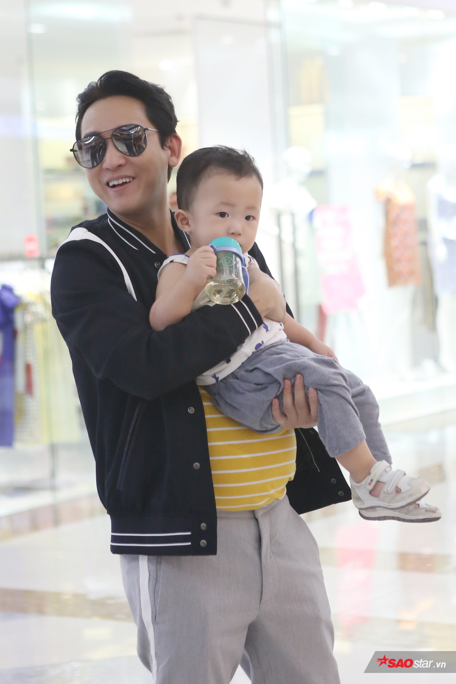 Bé trai yên bình trong vòng tay “bố Văn”.