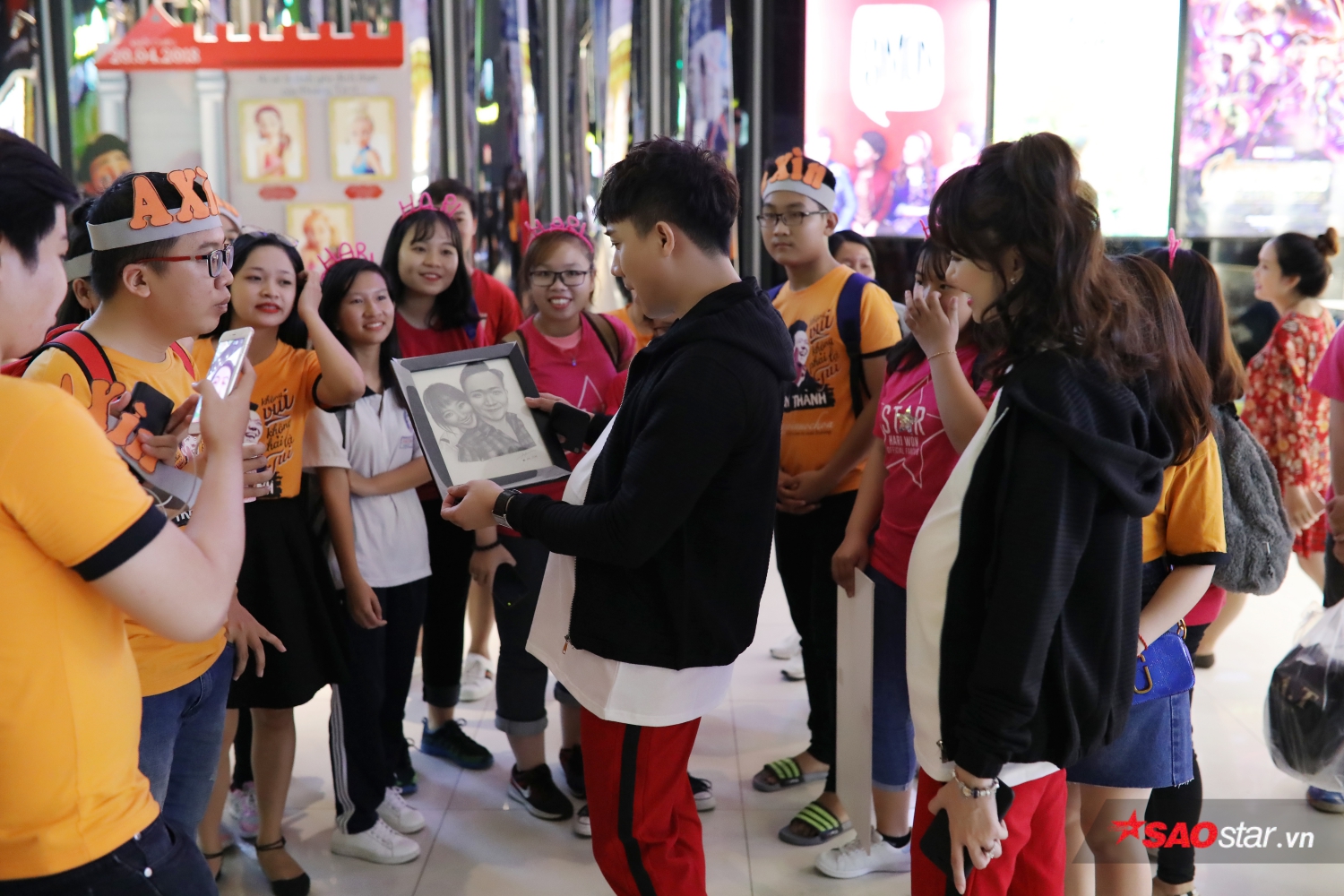 Sự góp mặt của 6 ngôi sao nổi tiếng trong show thực tế Khi đàn ông mang bầu đang là tâm điểm chú ý của các fan. Không chỉ có mặt từ sớm, fan club chung của Trấn Thành - Hari Won còn mang cả hoa và quà để tặng thần tượng. Nhận được một bức tranh vẽ tay khá kỳ công, xem ra vợ chồng A Xìn có đủ năng lượng cho cả ngày quay kéo dài.
