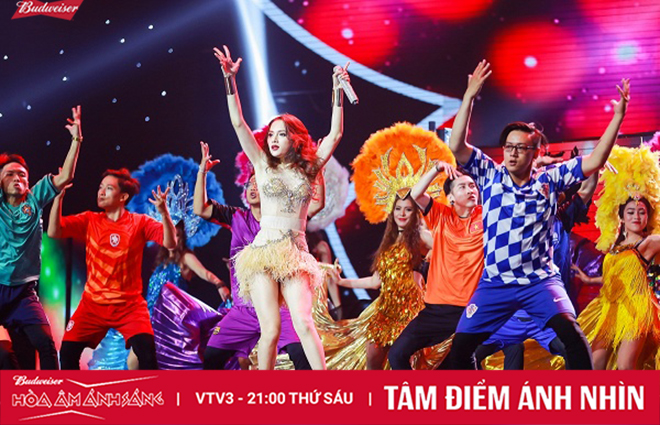 Hương Giang dẫn dắt khán giả đến một không gian lễ hội Carnaval nhiều màu sắc và thể hiện tinh thần cổ vũ bóng đá như những cư dân Nam Phi.