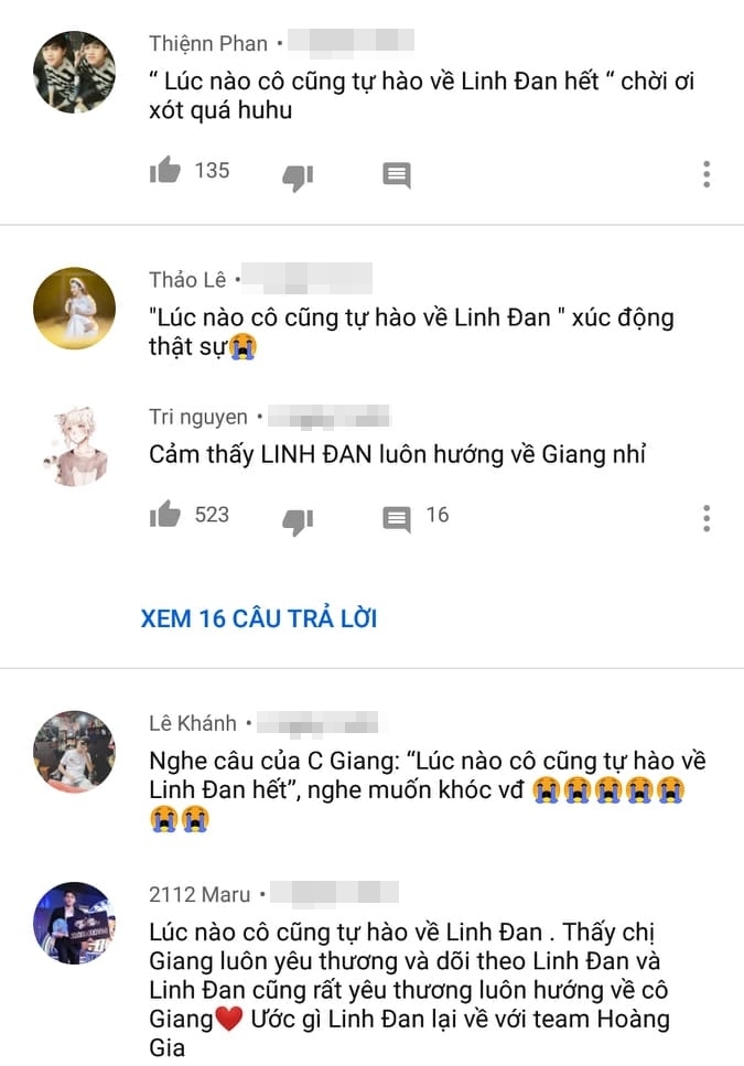 Hội fan của Team Hoàng gia đồng loạt để lại bình luận thể hiện sự xúc động khi huấn luyện viên Hương Giang dành lời khen ngợi cho Linh Đan - học trò cũ nay đã thành “chiến binh” của đội Dương Khắc Linh - Phạm Quỳnh Anh.