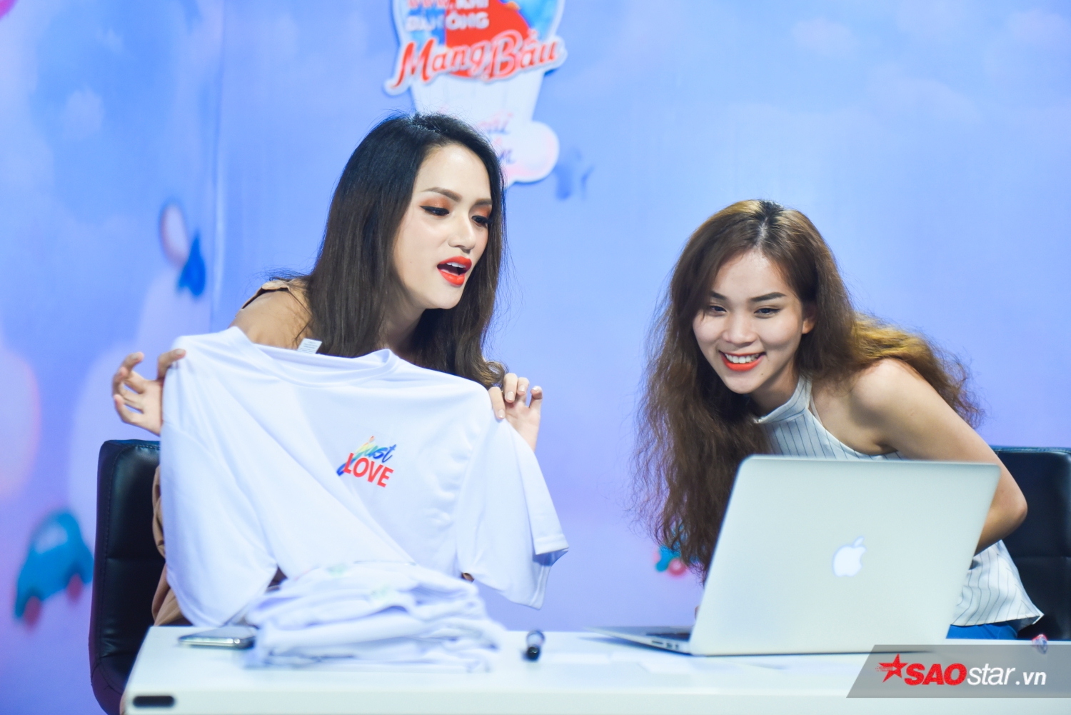 Hương Giang hy vọng có thể nhân rộng quỹ từ thiện của mình bằng cách livestream bán áo như thế này.