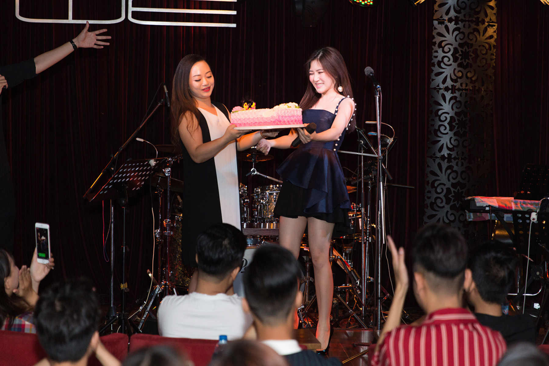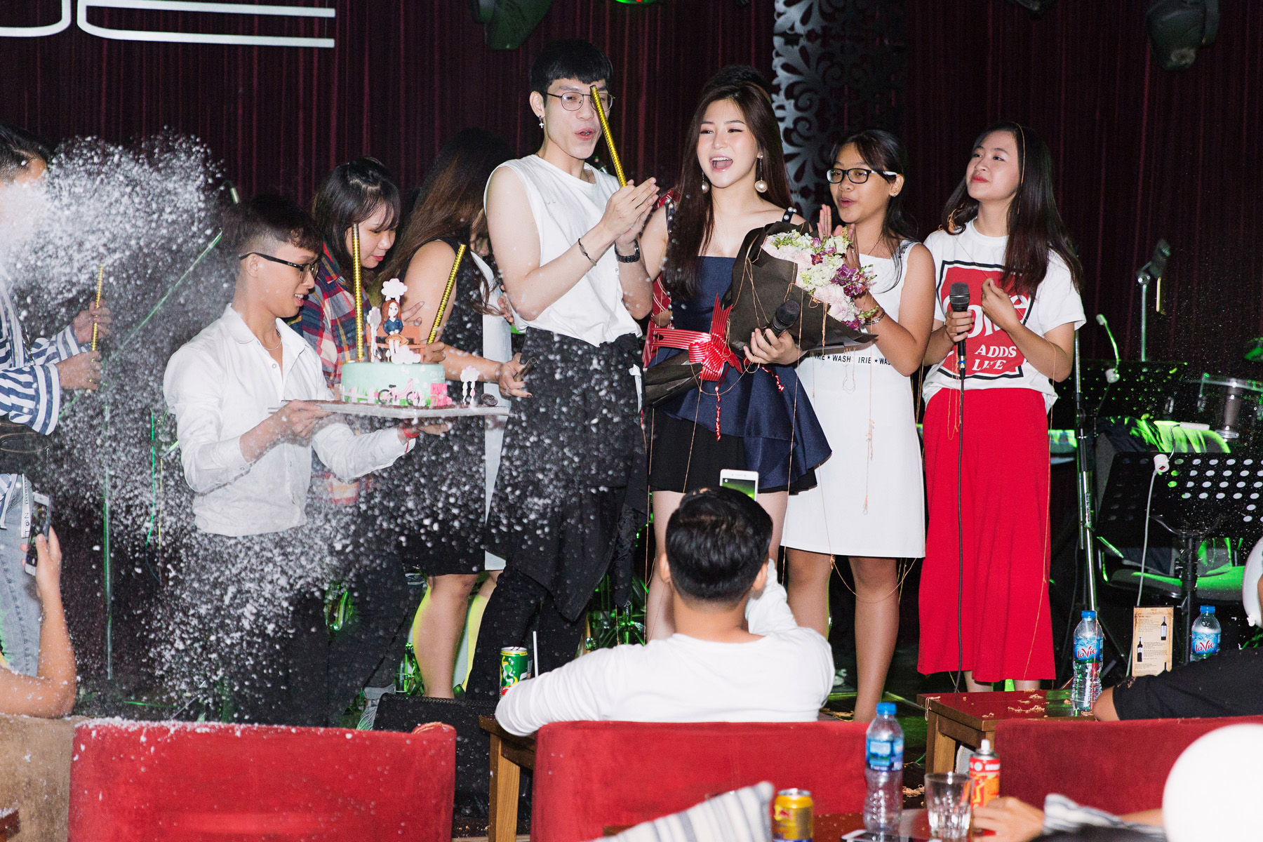 Nữ ca sĩ không giấu được niềm vui sướng khi được mọi người tổ chức sinh nhật.