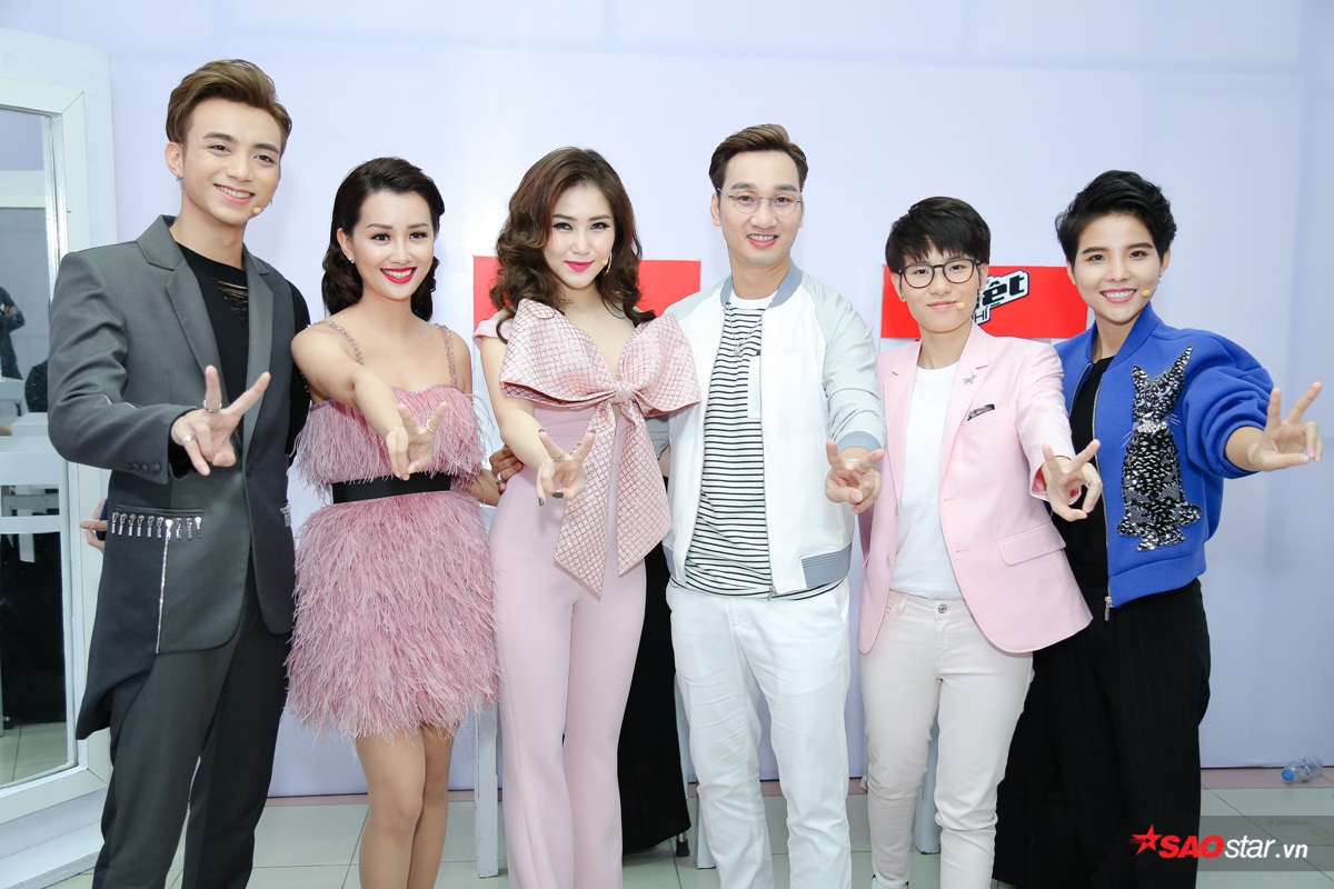 Trưa 16/8, The Voice Kids - Giọng hát Việt nhí 2017 ghi hình cho vòng Đối đầu tại NTĐ Tân Bình, TP.HCM. Bộ tứ HLV gồm Hương Tràm, Tiên Cookie, Vũ Cát Tường và Soobin Hoàng Sơn xuất hiện trong những bộ cánh nổi bật, chuẩn bị cho học trò trong hậu trường chuẩn bị “đối đầu”.
