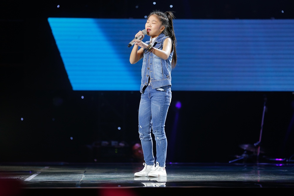 Ngay khi vừa kết thúc phần trình diễn, cô bé đã nhận được tiếng vỗ tay từ khán giả và HLV phải đứng lên dành cho em sự ngưỡng mộ.