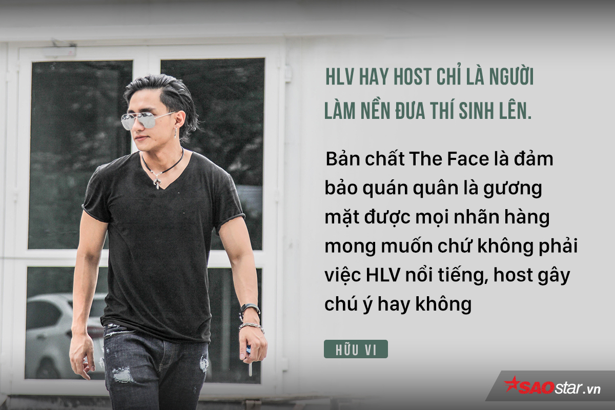 - Chắc chắn rồi! Việc tôi làm host của The Face không chỉ ở việc đưa vai trò con người tại vị trí đó ra sao mà còn ở việc mình sẽ có ảnh hưởng như thế nào đến HLV, thí sinh và chương trình.