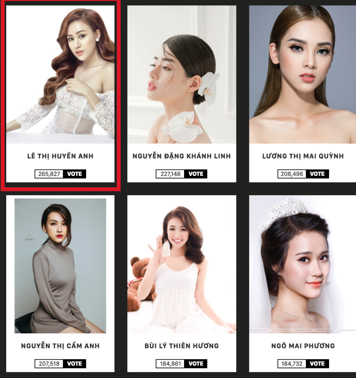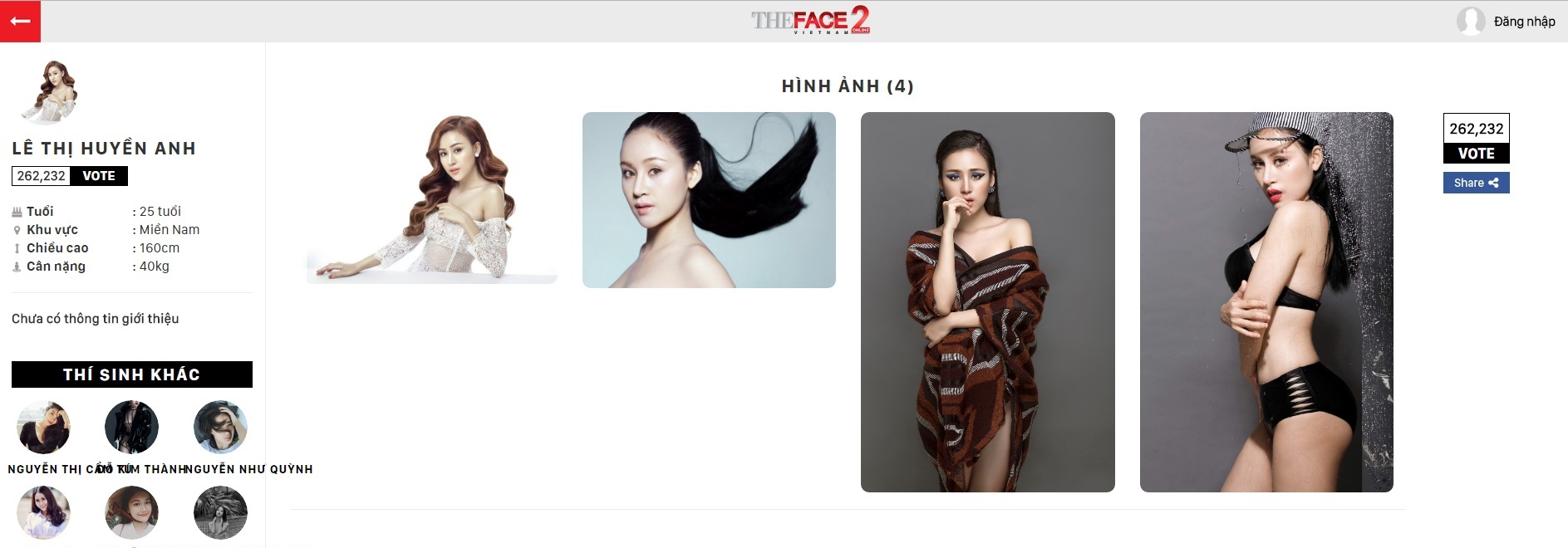 Hiện tại, tính đến ngày 15/3, Huyền Anh đang nằm trong Top 20 trên BXH bình chọn của The Face Online. Sau khi bình chọn được đóng vào ngày 16/3, 10 thí sinh có lượt vote cao nhất sẽ lọt vào chung kết để cùng thực hiện thử thách trực tiếp với ban giám khảo để lựa chọn ra 02 gương mặt xuất sắc nhất vào vòng ghi hình.