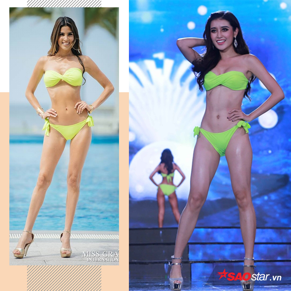 So với Miss Grand 2017, Huyền My có đôi chân dài nhưng kém “nuột” hơn.